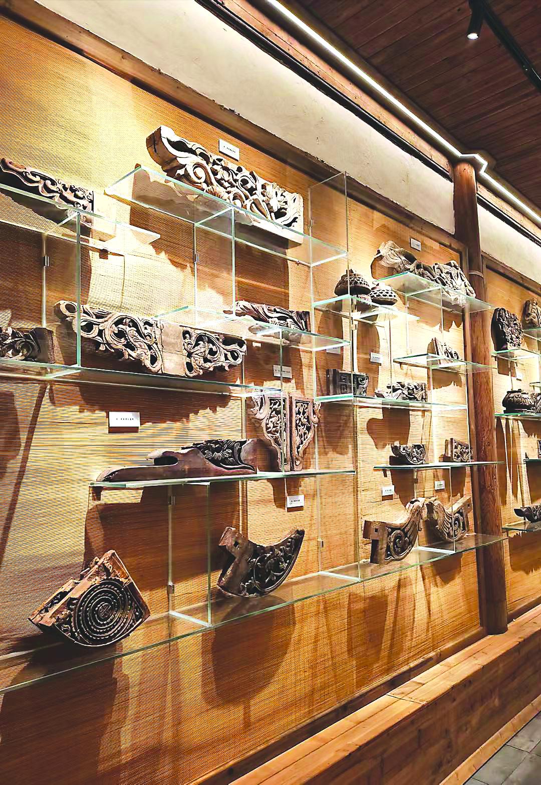 “雀替又称‘插角’或‘托木’,不仅能缩短梁枋跨度、分担承重,更承载着不同时代的工艺美学。”邹霞介绍,雀替从早期的拱形发展到宋代的楔头、蝉肚样式,明代出现云纹、卷草纹雕刻,清代更是衍生出龙、凤等动物纹样及多种类别,这些历史印记都成为咖啡馆的设计灵感。