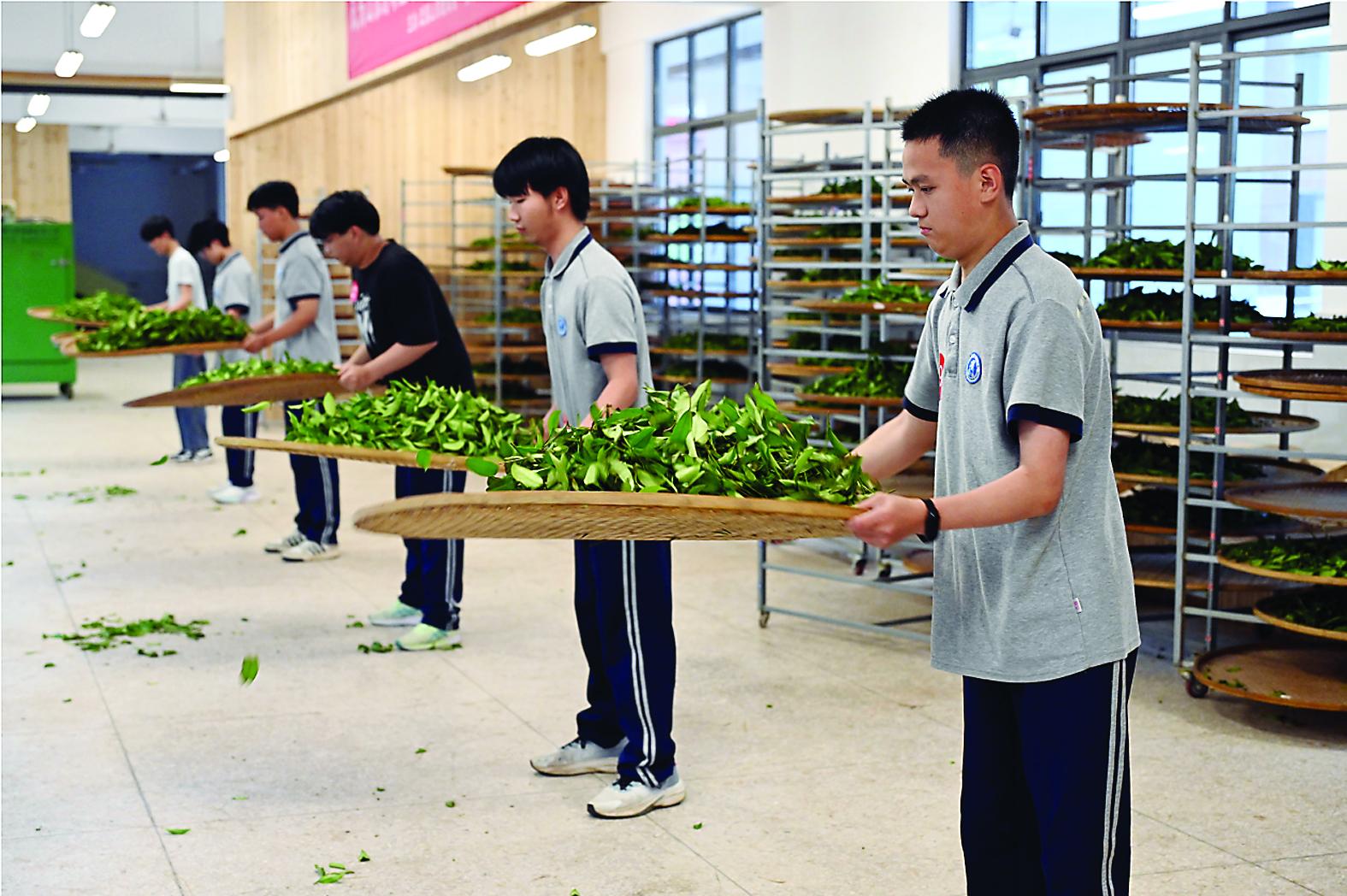 学校的产教融合实践基地里,经常开展茶叶制作技艺交流或培训活动。
