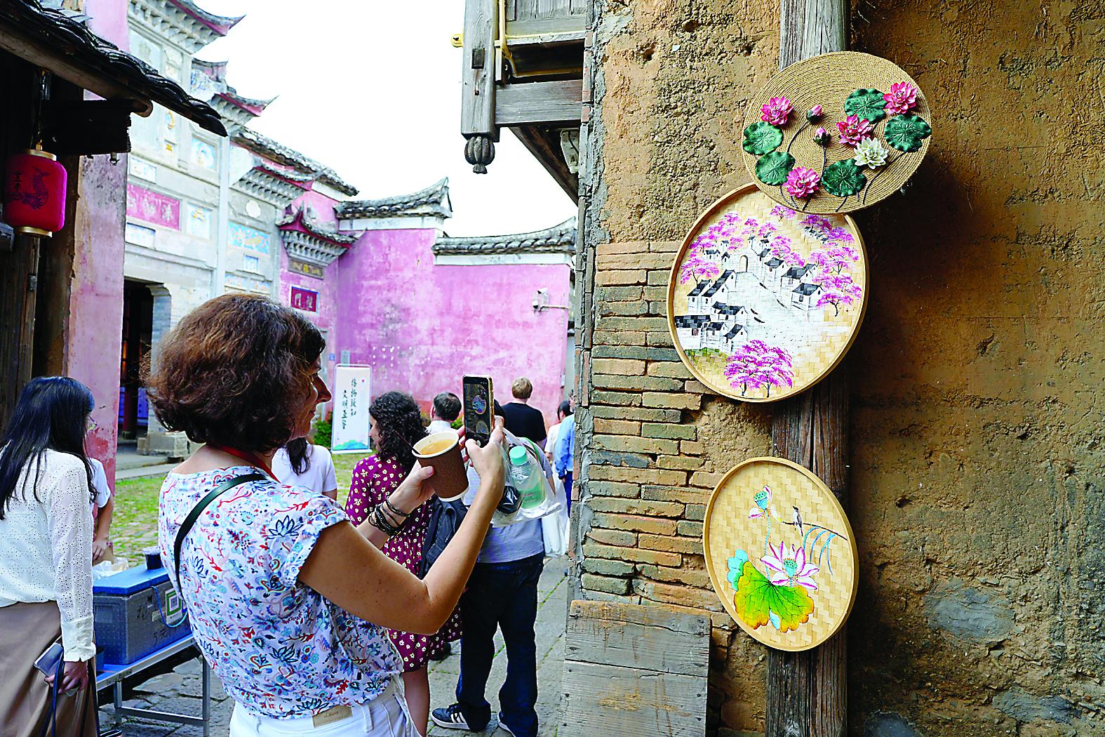 “这个龙鱼墙太震撼了。”来自福州的摄影爱好者陈翰玉调整着镜头,“尤其是阳光照射时,橙黄色的龙鱼与青砖形成鲜明对比,特别出片。”