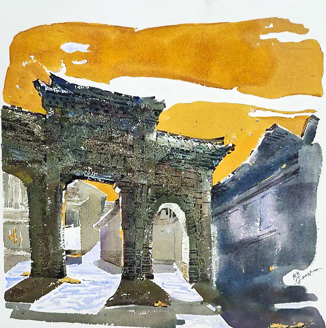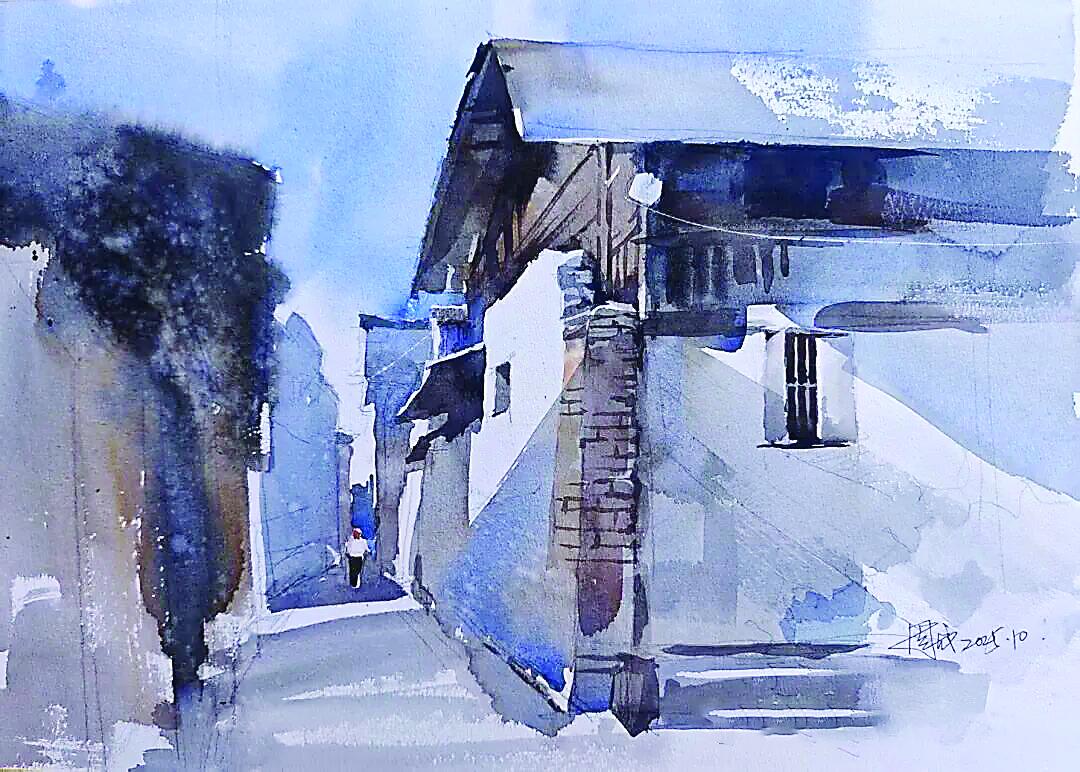 小镇暮色归 翁腾飞 作