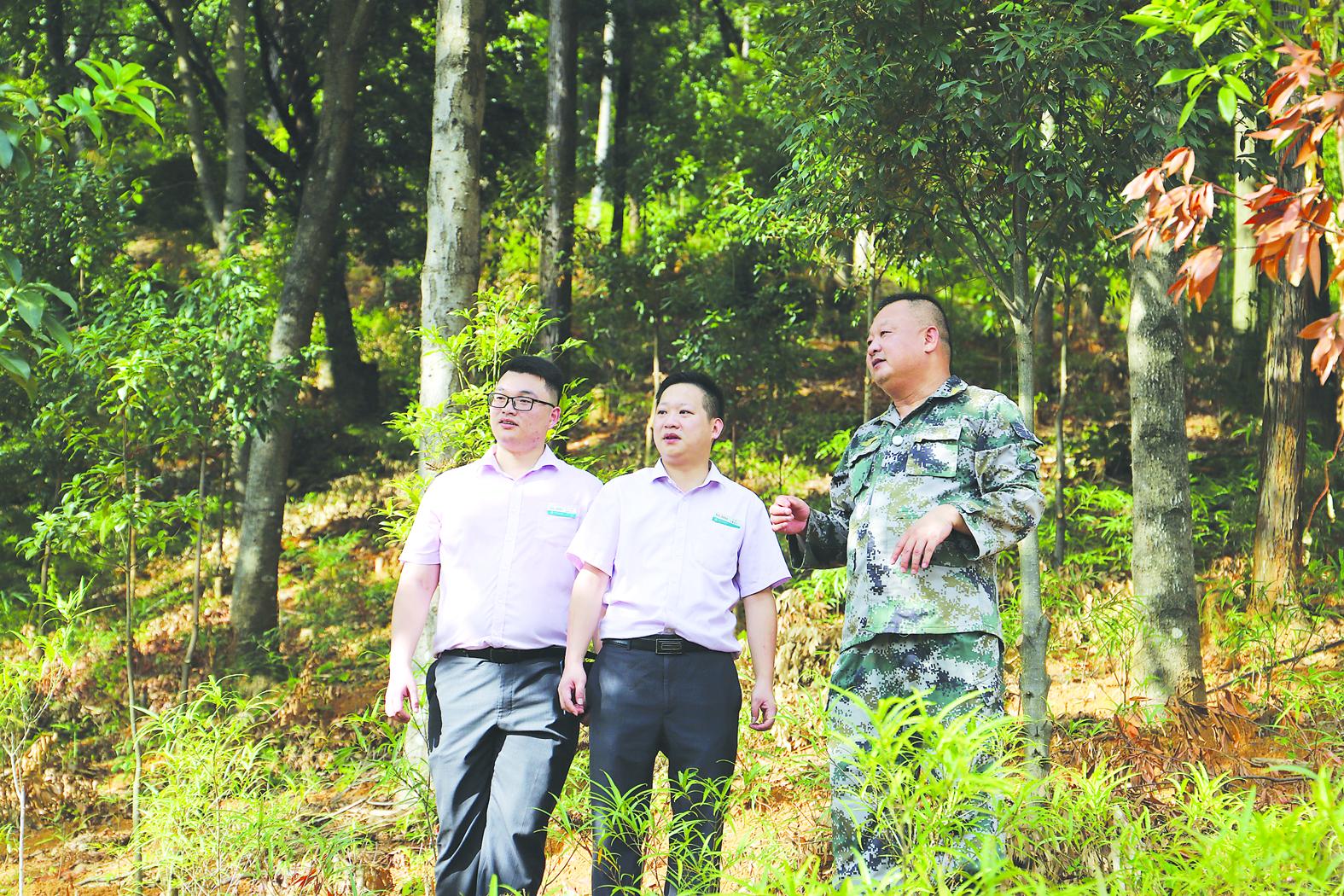 农行建瓯支行工作人员走访建瓯小桥镇大坵村乡村振兴带头人连祥(右),了解其林下经济种植情况。 (资料图片)