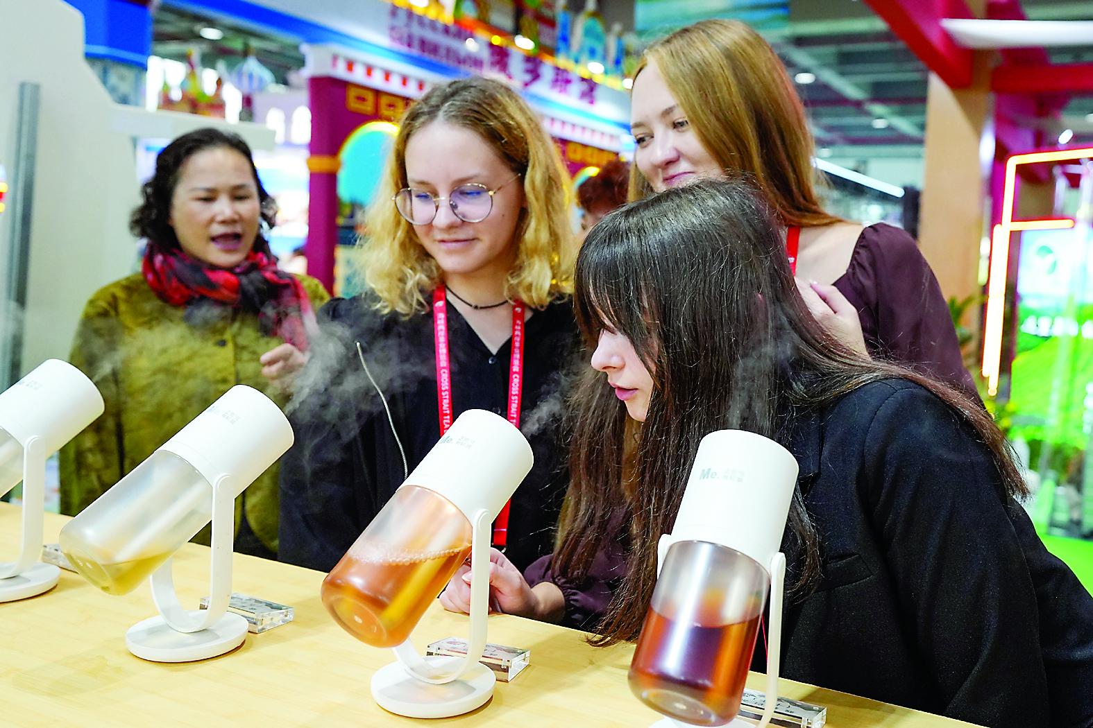 俄罗斯籍留学生在政和白茶馆“闻香” (朱宇 方诗琦 摄)