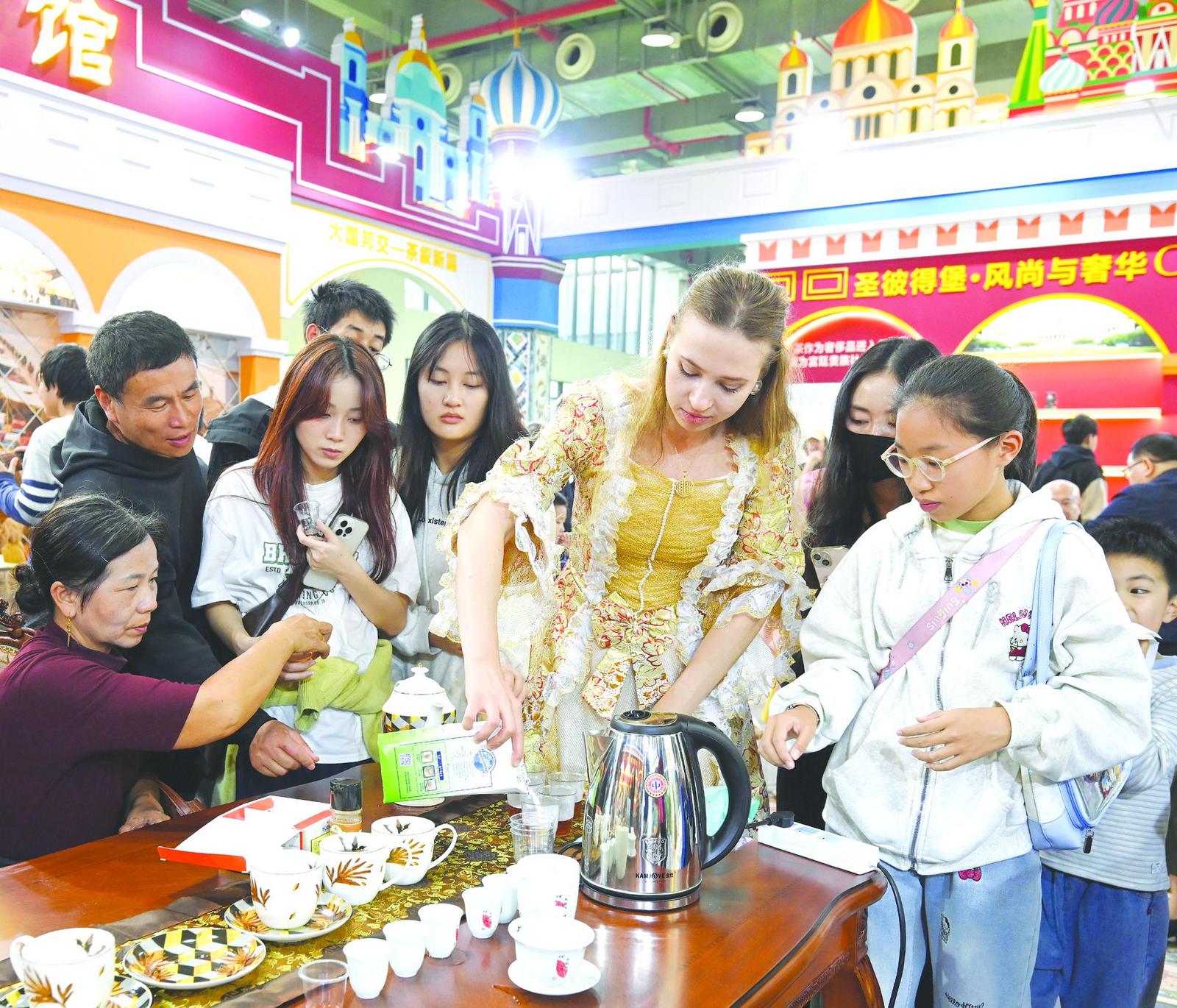 市民游客在俄罗斯馆品尝当地原汁原味的奶茶