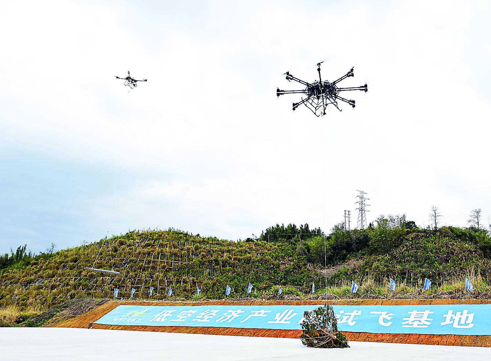 在位于南平工业园区新城低碳科技园的无人机产业园,工作人员进行重载无人机试飞。 (资料图片)