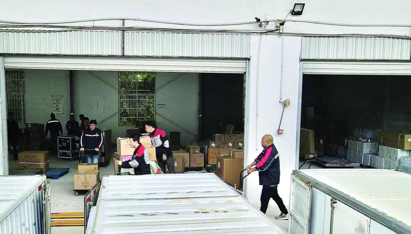 快递员们在“包裹的海洋”中穿梭忙碌。