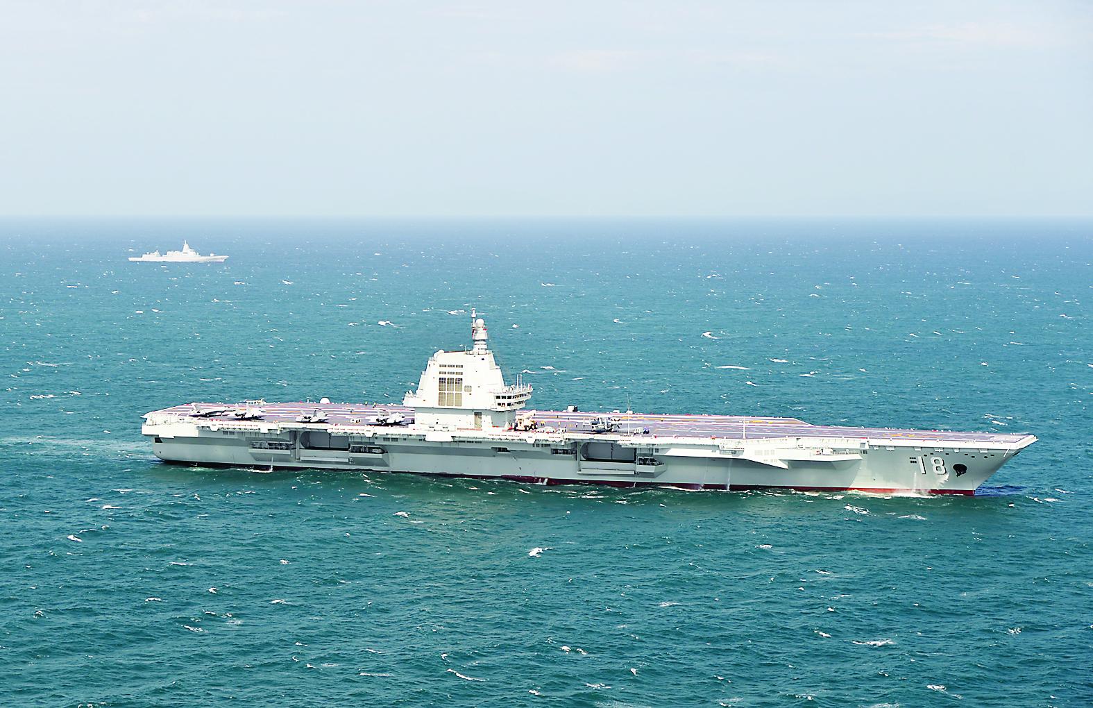 日前,海军福建舰开展入列后首次海上实兵训练。这是福建舰编队在航行。