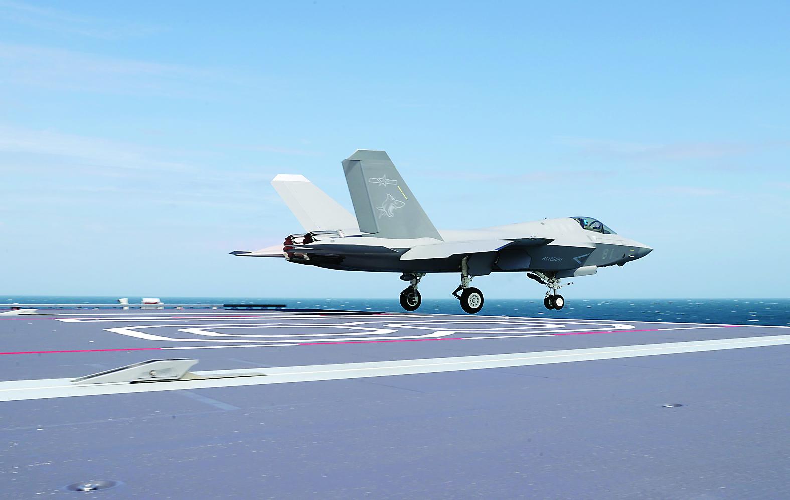 这是歼-35舰载机弹射起飞。