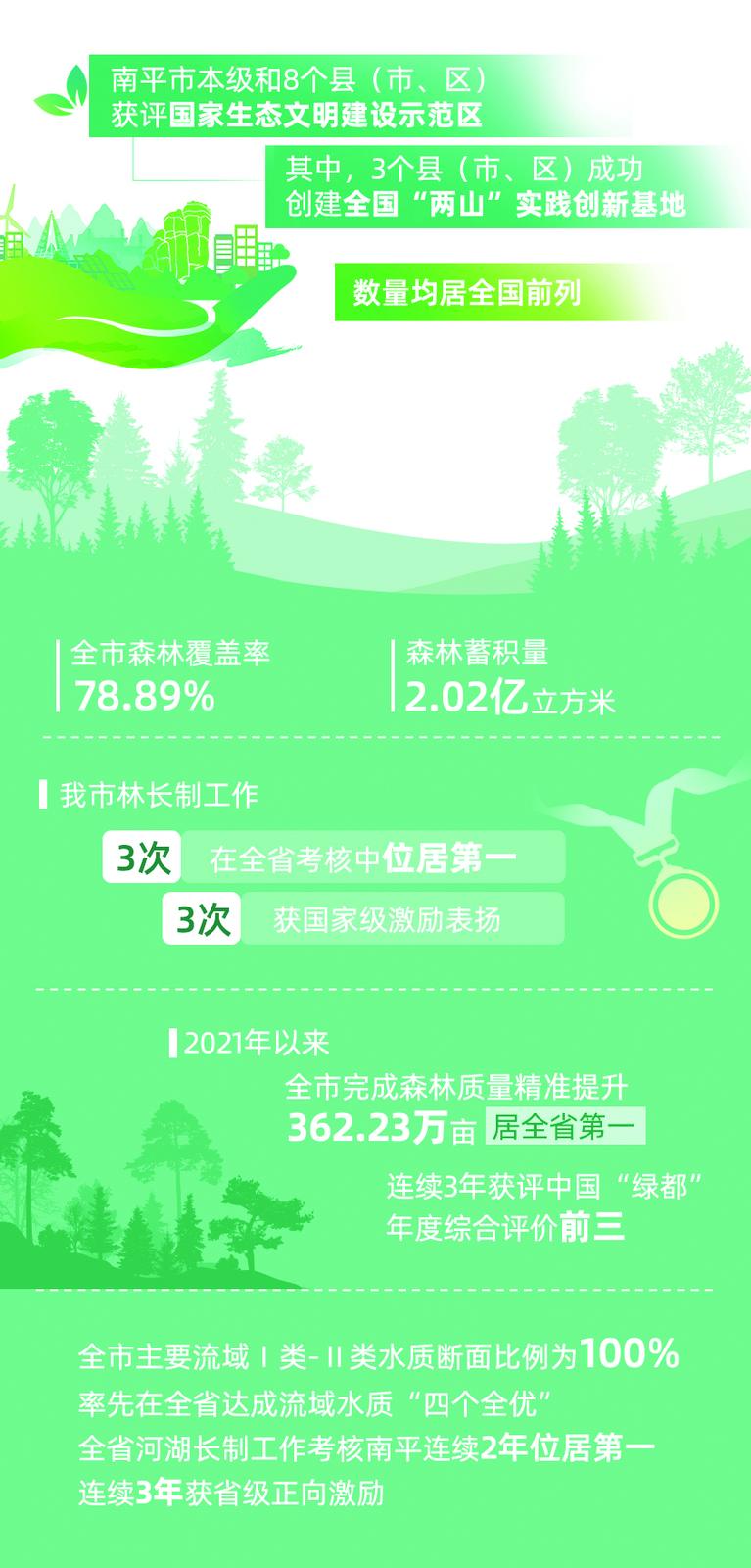 南平市本级和8个县(市、区)获评国家生态文明建设示范区,其中,3个县(市、区)成功创建全国“两山”实践创新基地,数量均居全国前列;