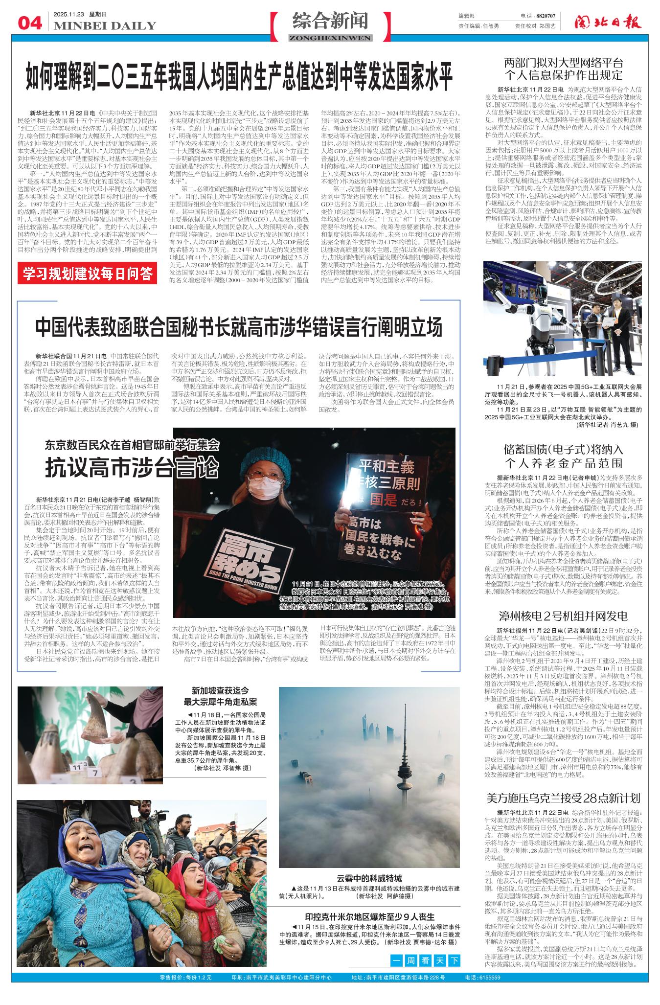 新华社北京11月22日电 《中共中央关于制定国民经济和社会发展第十五个五年规划的建议》提出:“到二〇三五年实现我国经济实力、科技实力、国防实力、综合国力和国际影响力大幅跃升,人均国内生产总值达到中等发达国家水平,人民生活更加幸福美好,基本实现社会主义现代化。”其中,“人均国内生产总值达到中等发达国家水平”是重要标志,对基本实现社会主义现代化至关重要。可以从以下3个方面加深理解。
