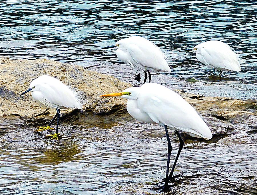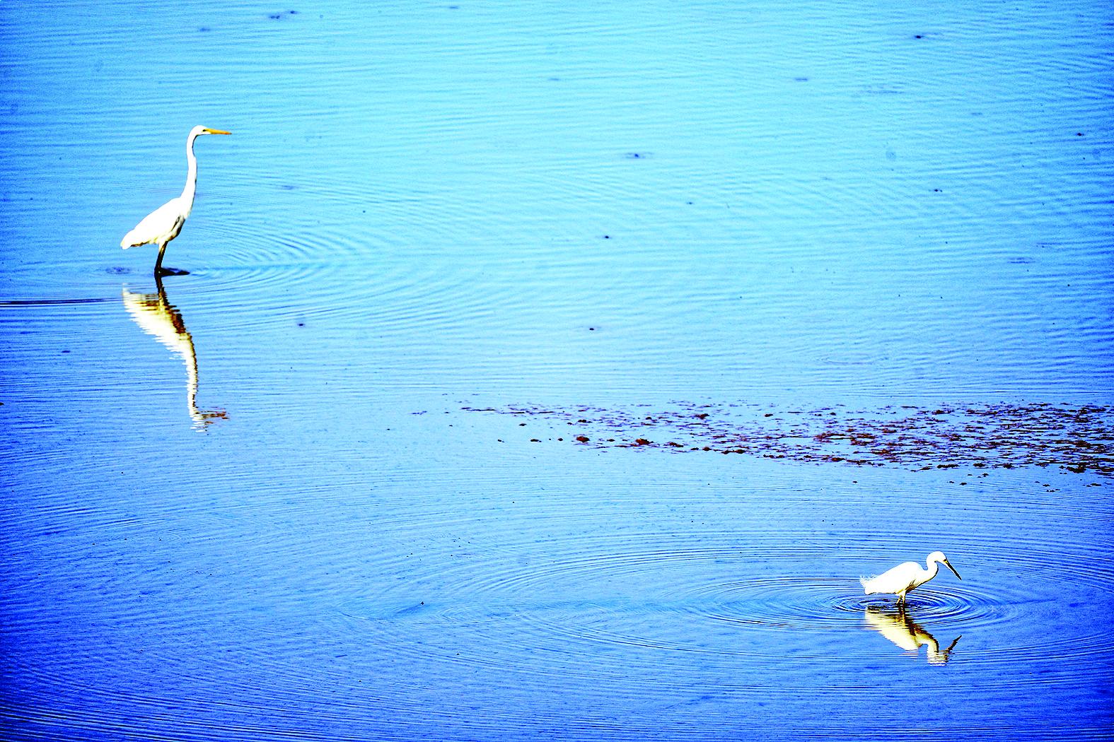 11月18日,在延平区沙溪口,白鹭在河滩上嬉戏。 (章盛德 摄)