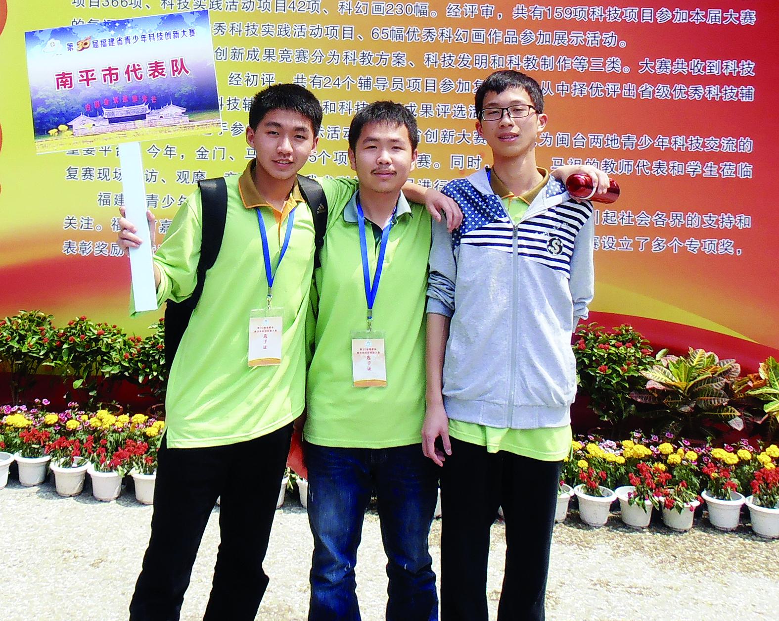 2015年4月,郭章旺、朱行杰、纪代瀚的研究成果在第30届福建省青少年科技创新大赛中获一等奖,并被授予“卢嘉锡科技创新专项奖”。图为三人获奖后合影留念。 (南平一中 供图)
