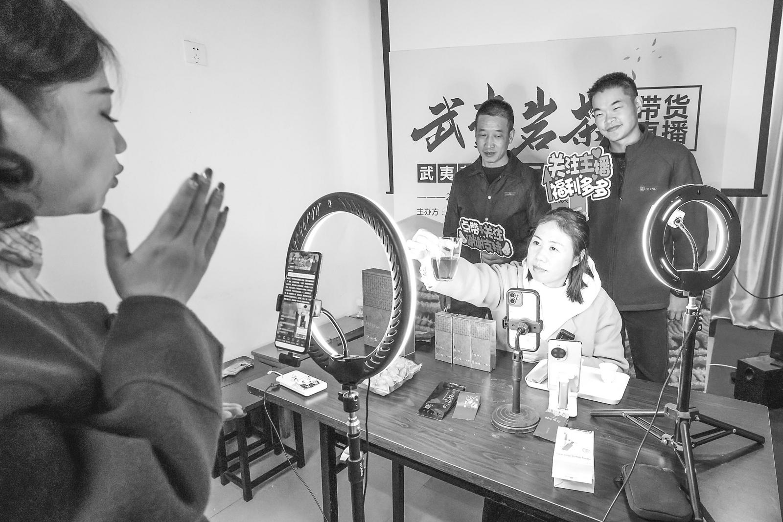 9日,参加武夷山市2025年高素质农民培训班的学员在课上学习直播带货。为加快“新农人”队伍建设,培育与农村发展相协调的高素质农民队伍,武夷山市农业农村局(农广校)举办新型农业经营主体数字化技能应用能力提升专题培训班,让农民朋友学以致用。