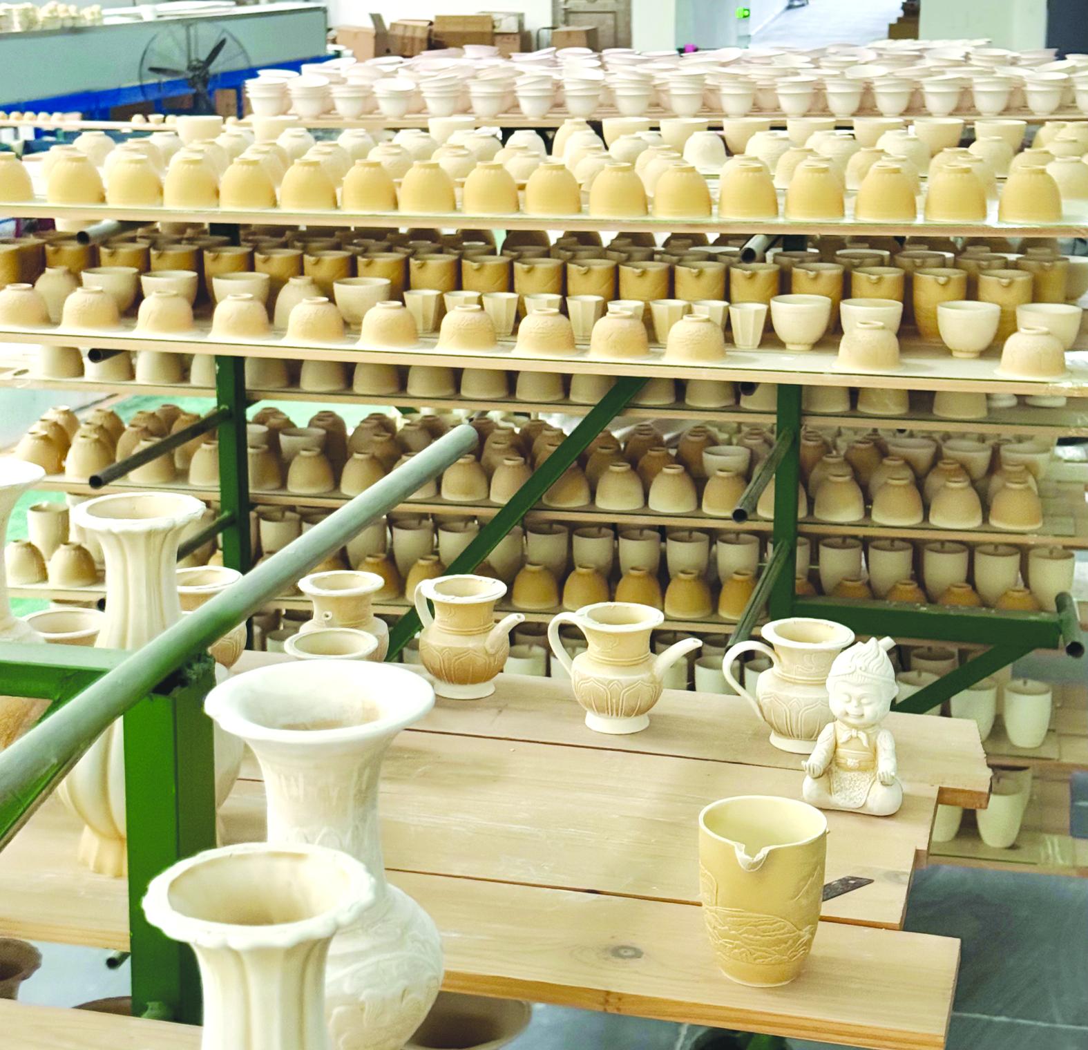真正的转机出现在2021年。一位景德镇瓷器经销商偶然见到一件高质量的“三无产品”。为了找到源头生产商订购,一路顺藤摸瓜来到浦城,最终了解到产品出自陈雪芳之手。双方顺利地谈下了合作订单,共两万五千件代工产品。“我们赚了将近20万元的利润。”陈雪芳认为,对当时的他们来说,那是一根“救命稻草”,让运营逐渐好转,也证明了他们的手艺和生产能力经得起市场的检验。
