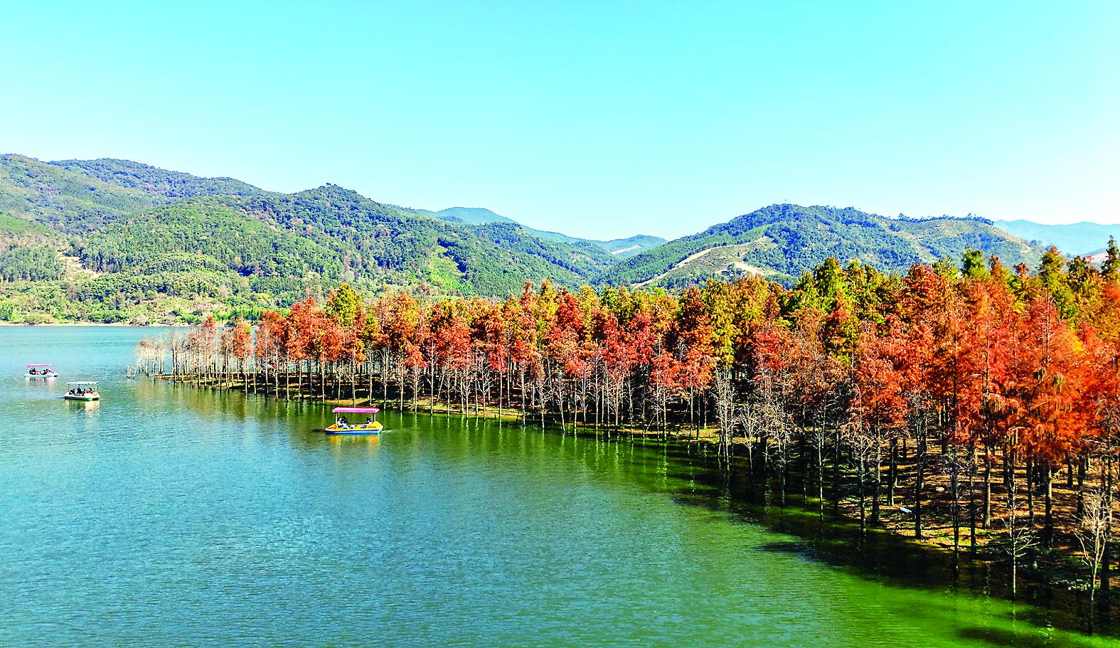 14日,游客在斜溪村湖面泛舟,欣赏落羽杉。最近,延平区炉下镇斜溪村落羽杉进入最佳观赏期,吸引不少游客前来打卡。近年来,斜溪村开展环境污染治理,引进环保治理技术,试点“循环经济”“净水工程”……在一系列严格的环保措施和修复治理下,斜溪村的生态环境持续改善。绿水青山入画来,举目之处皆风景,绿色生态成为乡村振兴的支撑点。