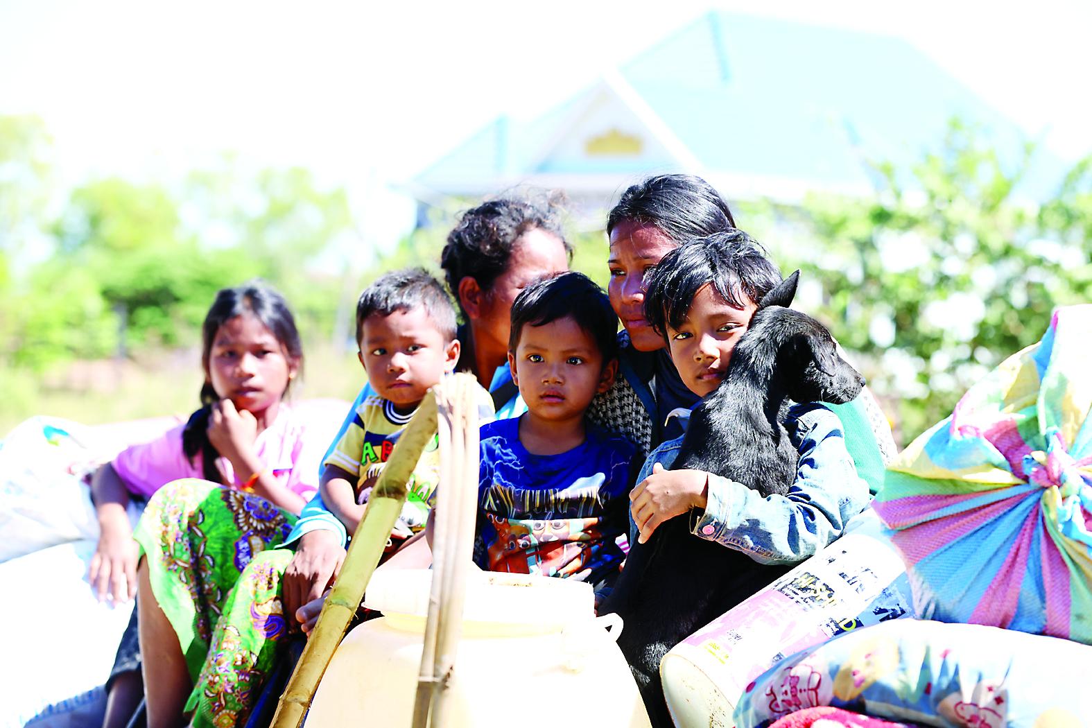 12月15日,人们从柬埔寨暹粒省的一处避难所撤离。 (新华社/柬新社)