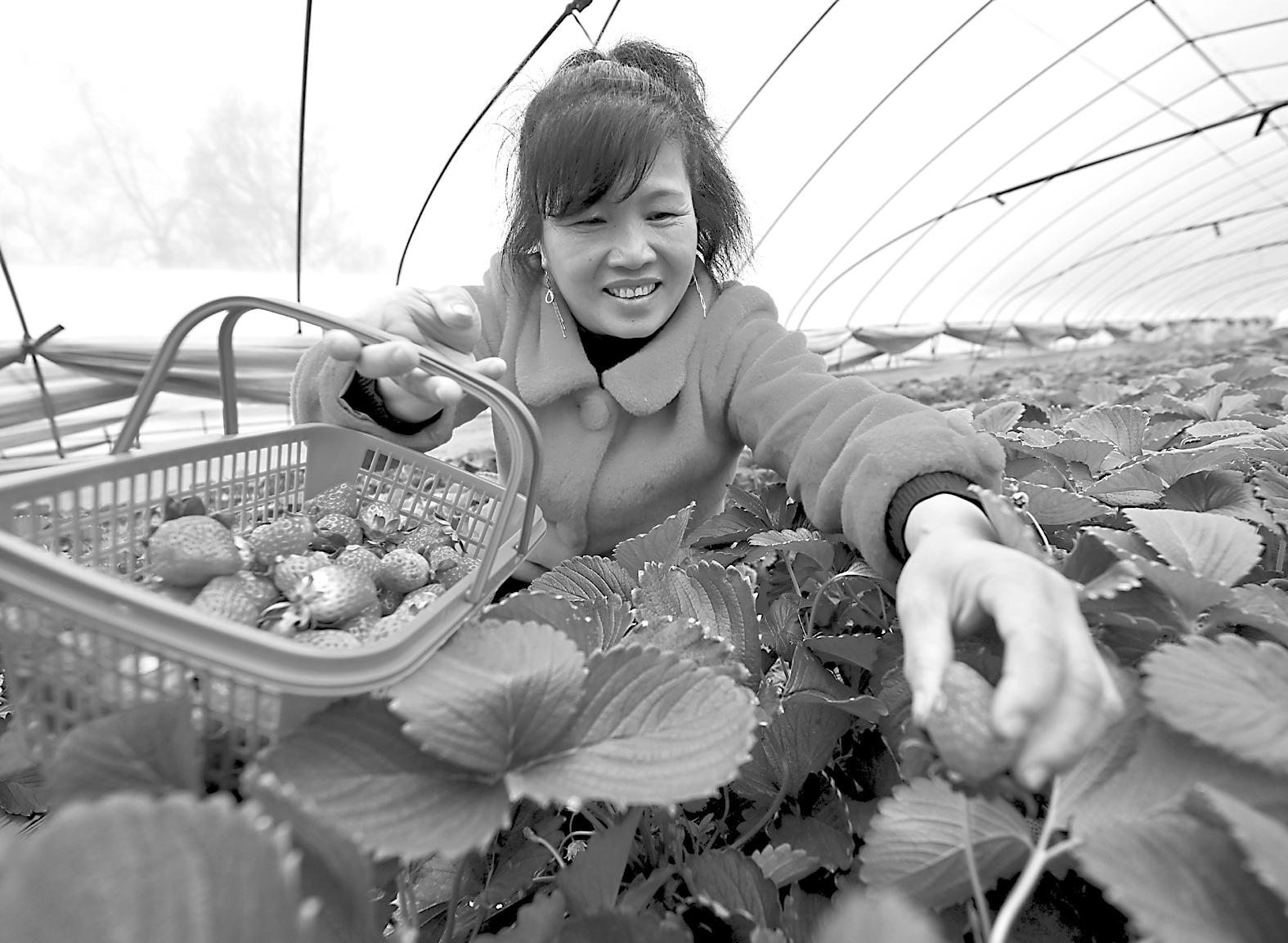 25日,建阳区麻沙镇扁溪村草莓种植户在采摘草莓。
