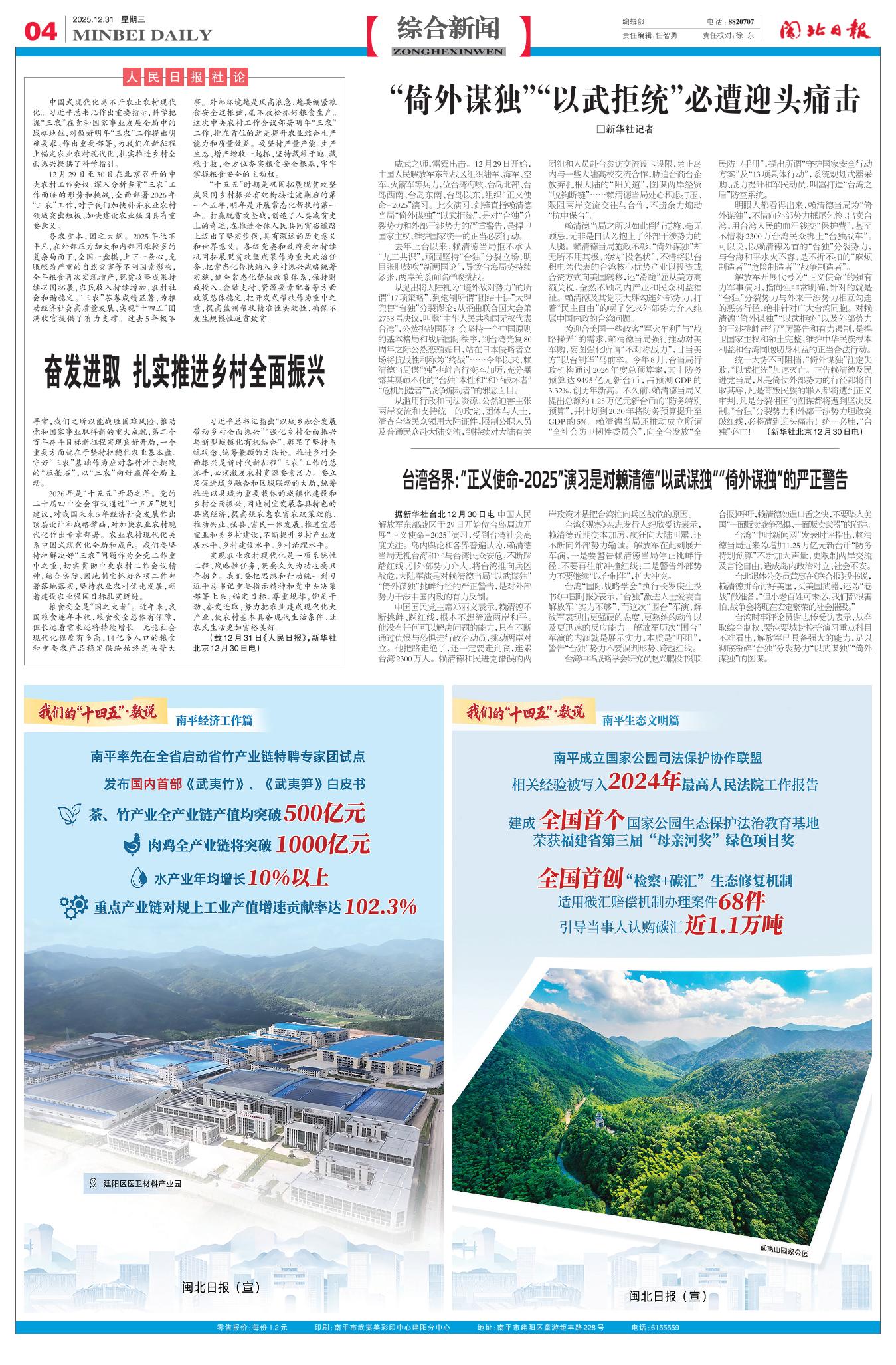据新华社台北12月30日电 中国人民解放军东部战区于29日开始位台岛周边开展“正义使命-2025”演习,受到台湾社会高度关注。岛内舆论和各界普遍认为,赖清德当局无视台海和平与台湾民众安危,不断踩踏红线、引外部势力介入,将台湾推向兵凶战危,大陆军演是对赖清德当局“以武谋独”“倚外谋独”挑衅行径的严正警告,是对外部势力干涉中国内政的有力反制。