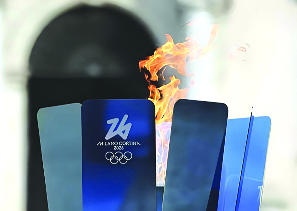 这是2025年12月5日拍摄的点燃仪式现场的庆典火盆。当日,2026年米兰-科尔蒂纳冬奥会火炬接力庆典火盆点燃仪式在意大利罗马奎里纳莱宫广场举行。