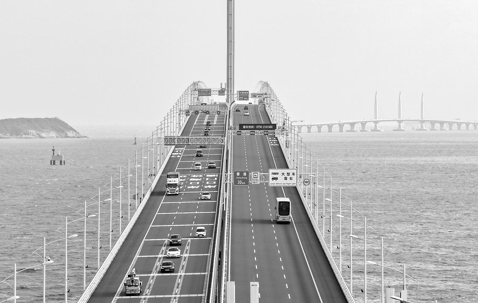 港珠澳大桥全长55公里,是世界最长的跨海大桥。2018年10月,大桥正式建成通车,香港到珠海、澳门的车程从3个小时缩短至约45分钟,大大缩短三地时空距离。随着“澳车北上”“港车北上”“粤车南下”等政策相继实施,大桥见证了粤港澳大湾区融合的加速度。 (新华社记者 邓华 摄)