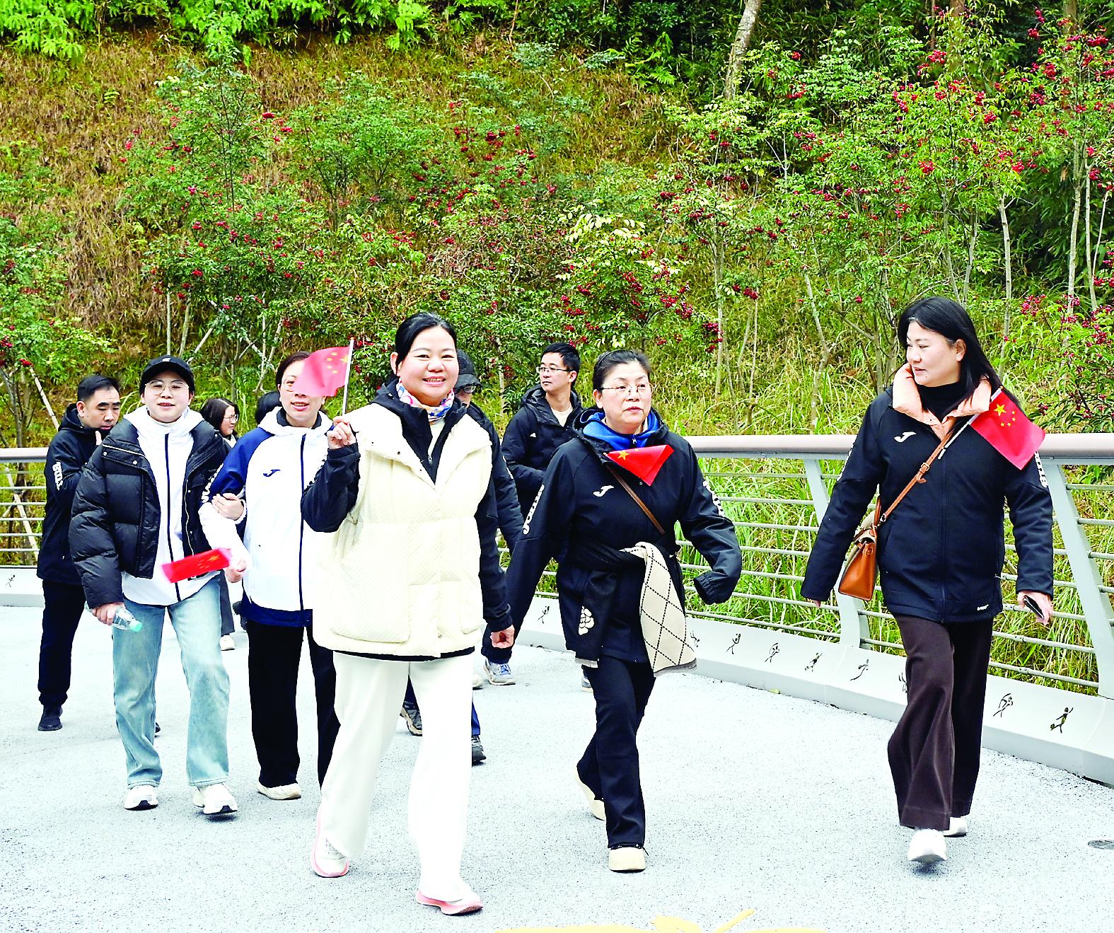 6日,由市体育局、市直机关党工委、市总工会、建阳区政府主办的2026 年南平市新年登高健身活动在武夷新区举行,吸引了近千名登山健身爱好者参与,大家用热情开启新年序章。图为活动现场。