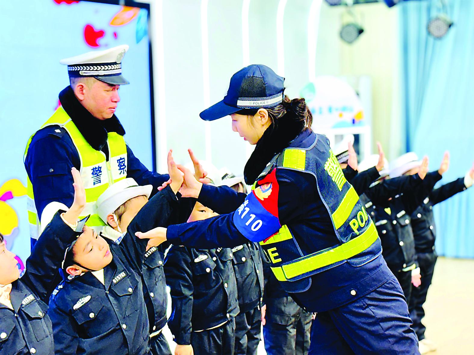 1月9日,邵武市公安局交警大队城市警务中队女警走进水北幼儿园,开展交通安全宣传。女警耐心教孩子识别“禁止通行”“人行横道”等常见交通标志,并通过互动问答、学习交通指挥手势等形式,让孩子们在轻松氛围中掌握交通安全知识。 (黄义清 摄)