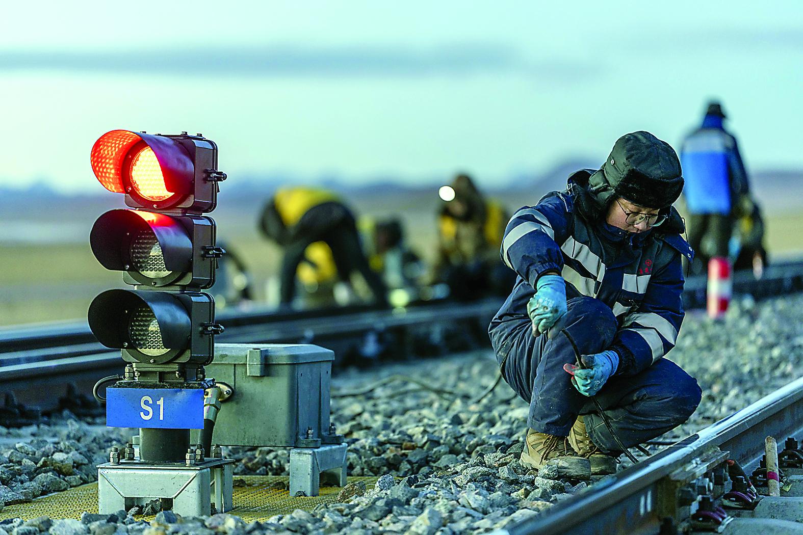 自2018年组建以来,工区负责唐古拉南、扎加藏布、雪查玛三座高海拔车站的信号设备日常维护和故障处理。来自汉族、藏族、蒙古族等民族的10名青年职工在此扎根坚守,他们平均年龄不足32岁,最大37岁、最小仅26岁。这群年轻人直面极端恶劣的自然环境,始终以乐观向上的姿态坚守岗位,以高度的责任与担当,为即将到来的春运筑牢安全防线,守护铁路畅通,护航万家团圆与平安。 (新华社记者 旦增尼玛曲珠 摄)