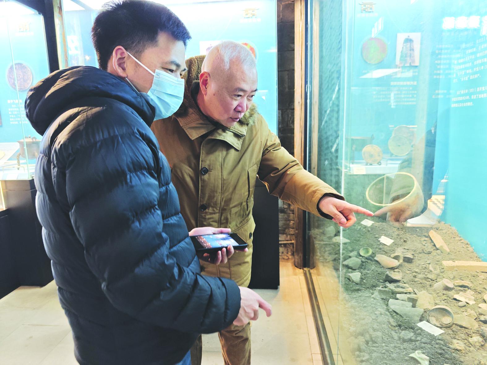 邓宝生向游客介绍藏品