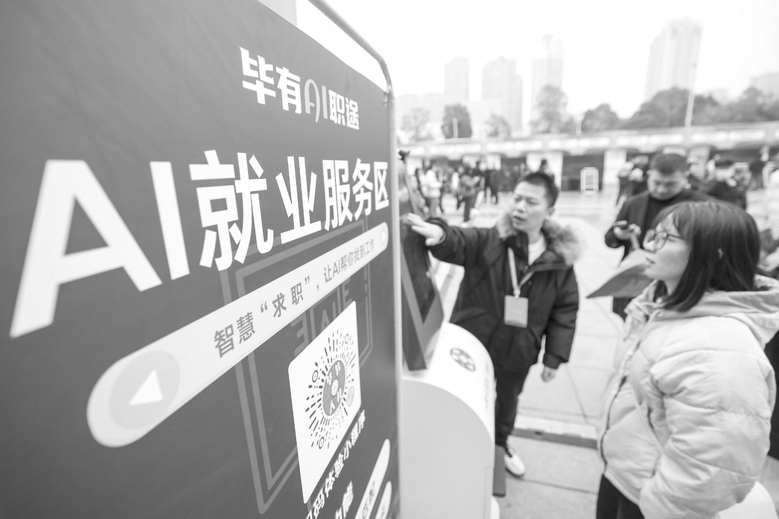 工作人员在贵州省2026年“春风行动”暨五省联动就业服务季活动现场介绍AI就业辅助系统(2026年1月16日摄)。