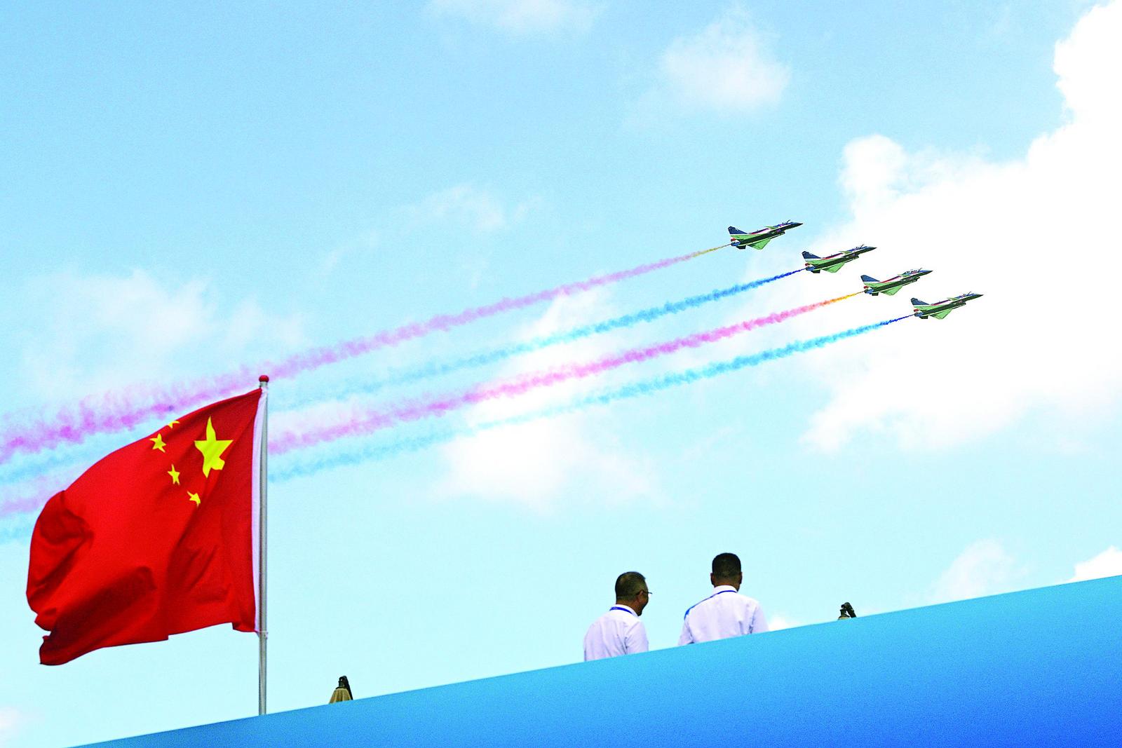 2月3日,中国空军八一飞行表演队在第十届新加坡航展首日进行飞行表演。
