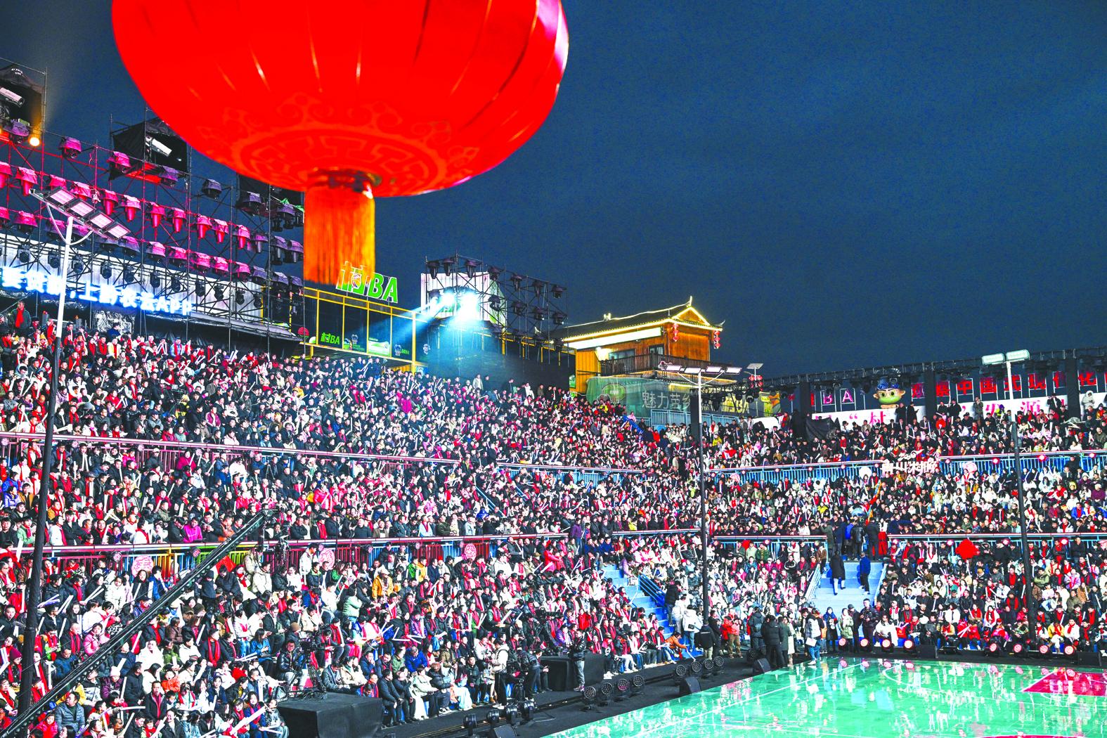 2月3日晚,2026贵州“村晚”主会场活动在黔东南苗族侗族自治州台江县“村BA”球场录制拍摄。“村晚”现场给观众带来“村BA”“村超”“村T”“村歌”等贵州“村字号”节目,演出以村民为主,展示贵州多姿多彩的民族文化和地方“村字号”IP特色。