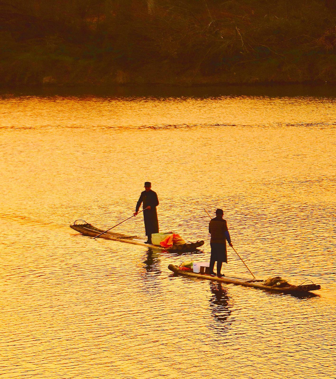 与西溪河的缘分始于2019年秋。彼时我刚学摄影,为寻一处理想取景地辗转多处,却总不尽如人意。某日清晨,我原计划前往一处山庄拍荷,途经西溪河时,却被眼前山水相连的景致攫住了目光——天色微亮,光影交织,旭日初升时河面铺满金黄,两叶竹排并行而前,渔人撒网收鱼,近处的排影缓缓划向河心,而朝阳的倒影正悬于中央。这旭日、竹排、渔者与光影的邂逅,堪称可遇不可求的瞬间。我肆意按下快门,成就了《西溪河晨曲》。这张未加修饰的作品在摄影群中广受赞誉,多次被刊用,也让我与西溪河结下不解之缘。