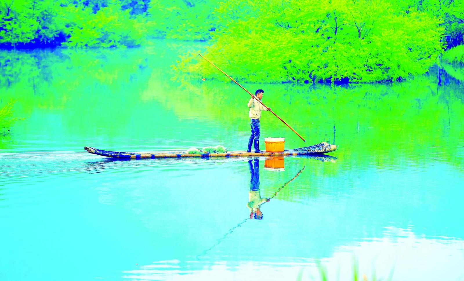 腊月清晨,寒气刺骨,我几经踌躇,终被念旧之情推动着出门。熟悉的倒影山峦、交错电塔、晨钓者与水鸟,连同空气中清润的水草气息,瞬间抚平了冬日的凛冽。我独拥这一方山水,享受静谧,恍若与老友久别重逢。清风拂过河面,寒烟袅袅,没有喧嚣,唯见碧玉般的水波轻荡。步道旁曾见证情侣漫步,此刻却只有跑者擦肩而过的招呼声。天色渐明,山际泛红,河面染上金辉,一叶竹排如约破雾而来,剪影翩然,与白鹭齐飞、水鸟潜游共绘早春晨渔图。我贪婪地将这视觉盛宴收入镜头,写入心间。