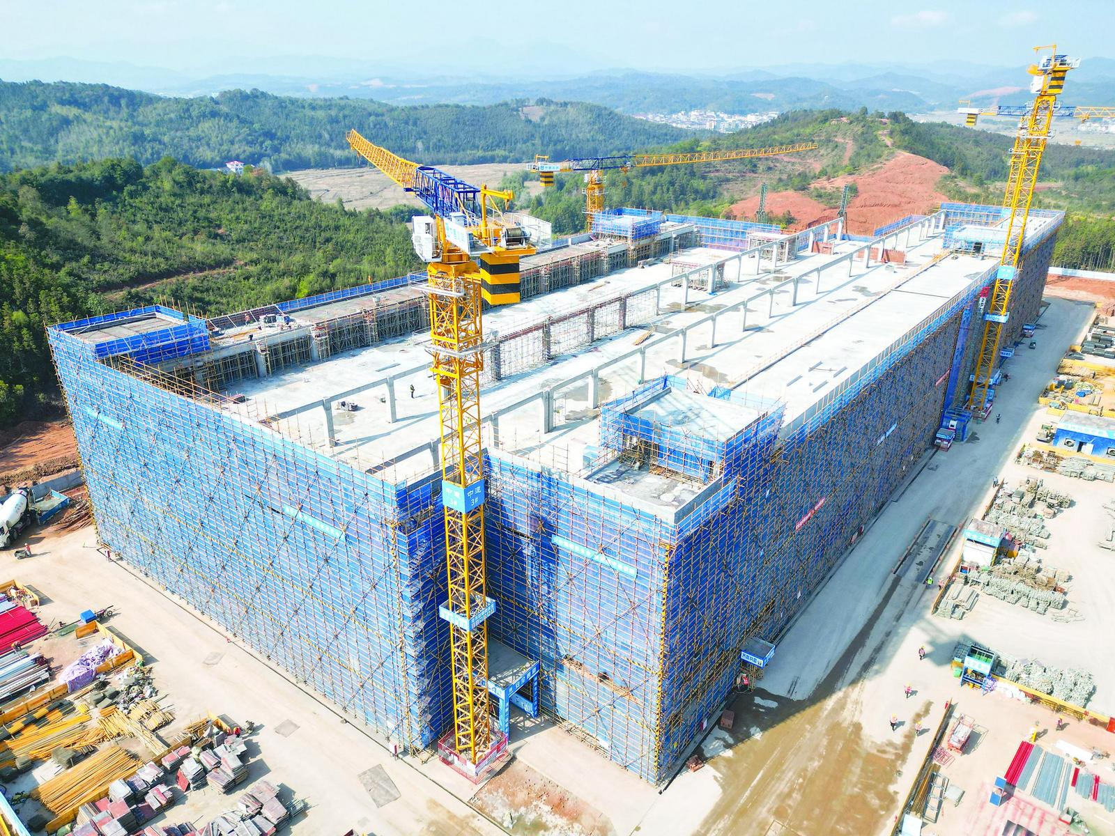 这是近日拍摄的建阳医卫材料产业园二期建设现场。该项目总投资约1.86亿元,主要建设多层厂房、污水处理池、事故应急池、固废收集间及垃圾收集点等,并配套建设项目规划用地范围内室外给排水、供电、道路、围墙及绿化等设施,目前主体结构施工加速中。项目计划3月底开始逐步移交企业安装生产设备,预计10月份整体竣工。 (张行健 陈颖 摄)