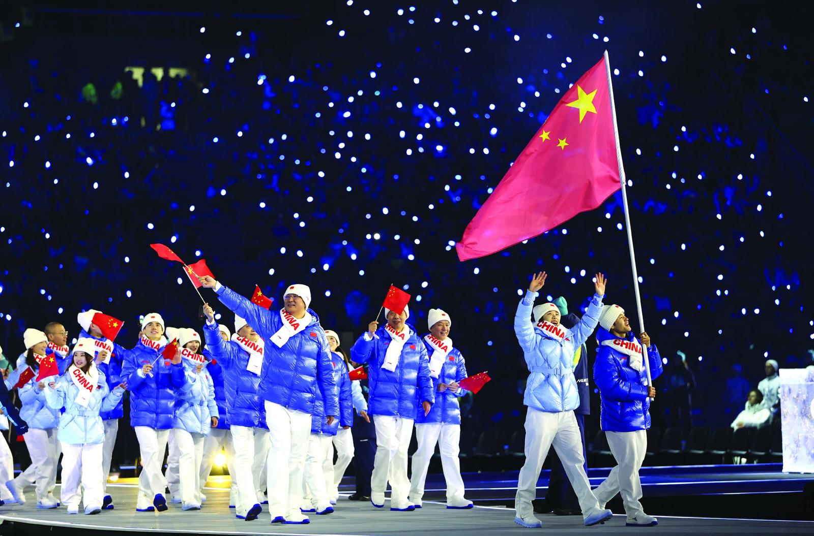 二月六日,中国体育代表团在开幕式上入场。