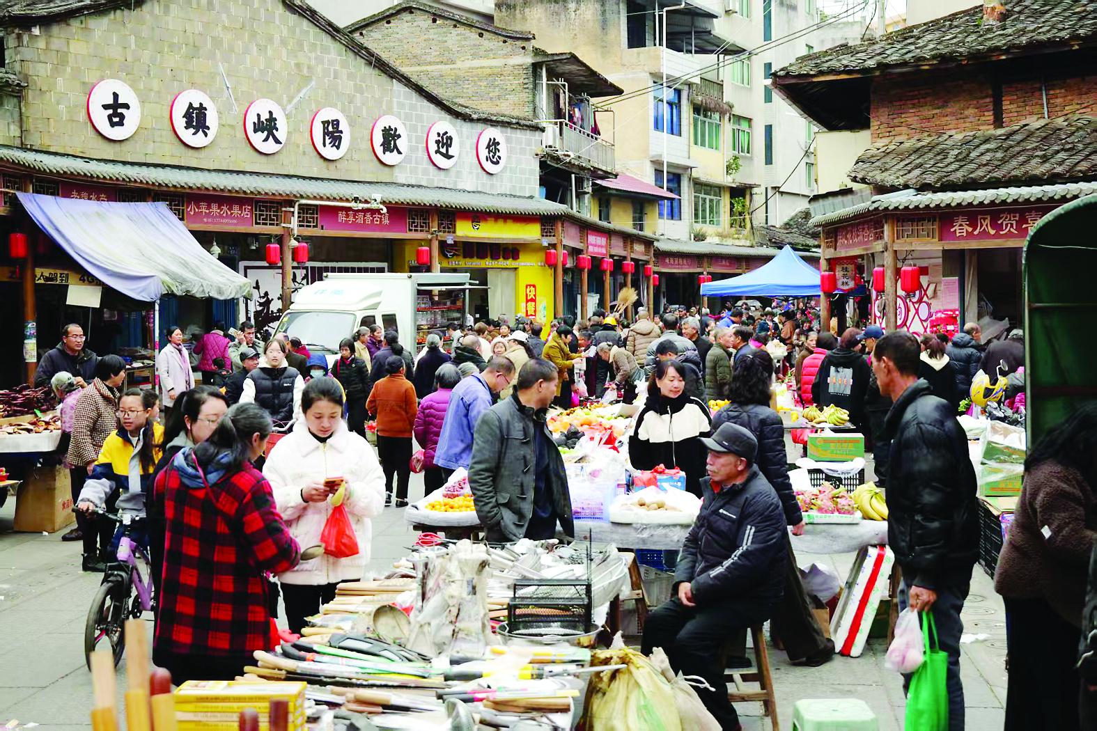 当天是农历腊月十一。每月逢农历日期一、六,是峡阳镇固定的赶圩日。峡阳镇德胜街、敖州街、前进街三条相连的街道,从德胜街口一直延伸到兴龙坊,被临时摊位填满。三轮车、木桌沿街排开,人流顺着街道缓慢前行,不时在摊位前停下。