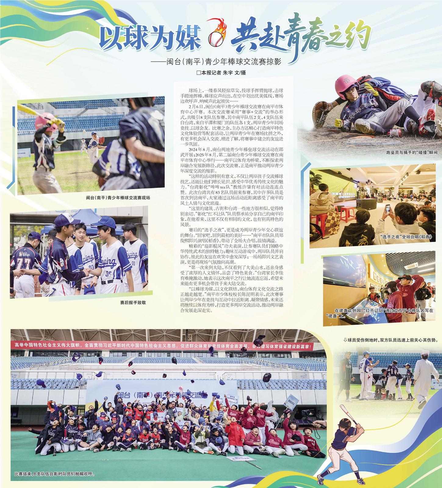 2024年8月,南台两地青少年棒垒球交流活动在邵武开展;2025年8月,第二届南台青少年棒球交流赛在南平市体育中心举行……南平以体育为桥梁,不断探索两岸融合发展新路径,此次交流赛,正是南平推动两岸青少年深度交流的缩影。