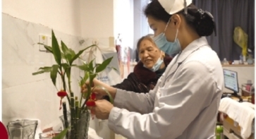 护士为病房装点新春饰品