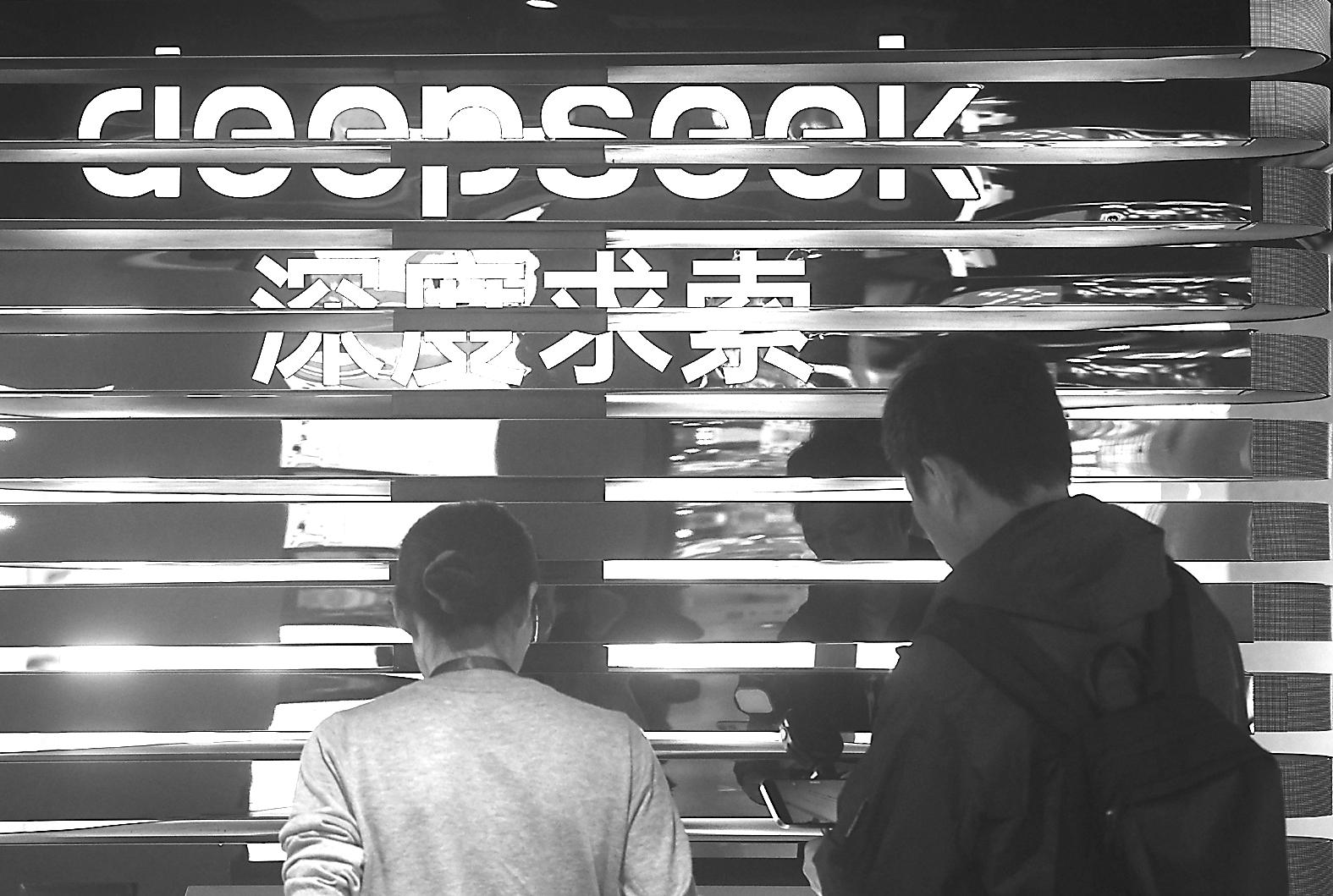 图为:2025年5月4日,人们在浙江省杭州市文三数字生活街区的AI黑科技市集上体验DeepSeek的人工智能大模型。