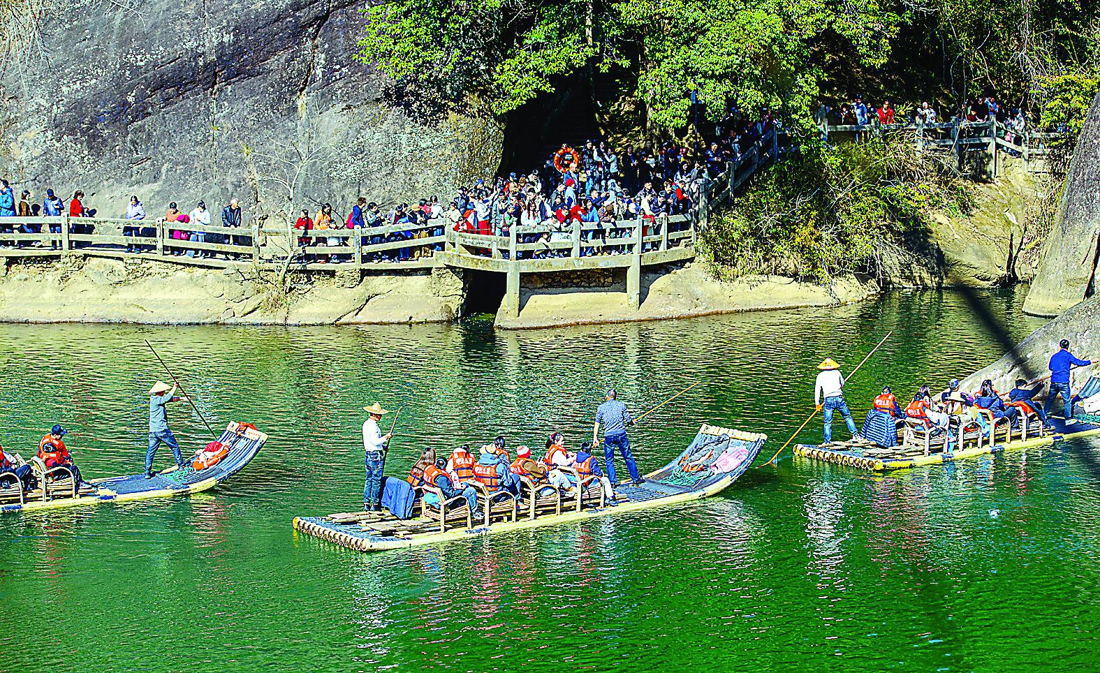 2月20日,正月初四,武夷山旅游市场热度持续攀升,围绕“春来武夷,马上有福”主题,当地推出了一系列诚意满满的惠民政策和年味十足的特色活动 ,凭借独特的山水魅力和浓厚的年味氛围,春节假期前六日接待游客量位列全省第一。图为武夷山景区内游人如织。 (张筱惜 彭善安 摄)