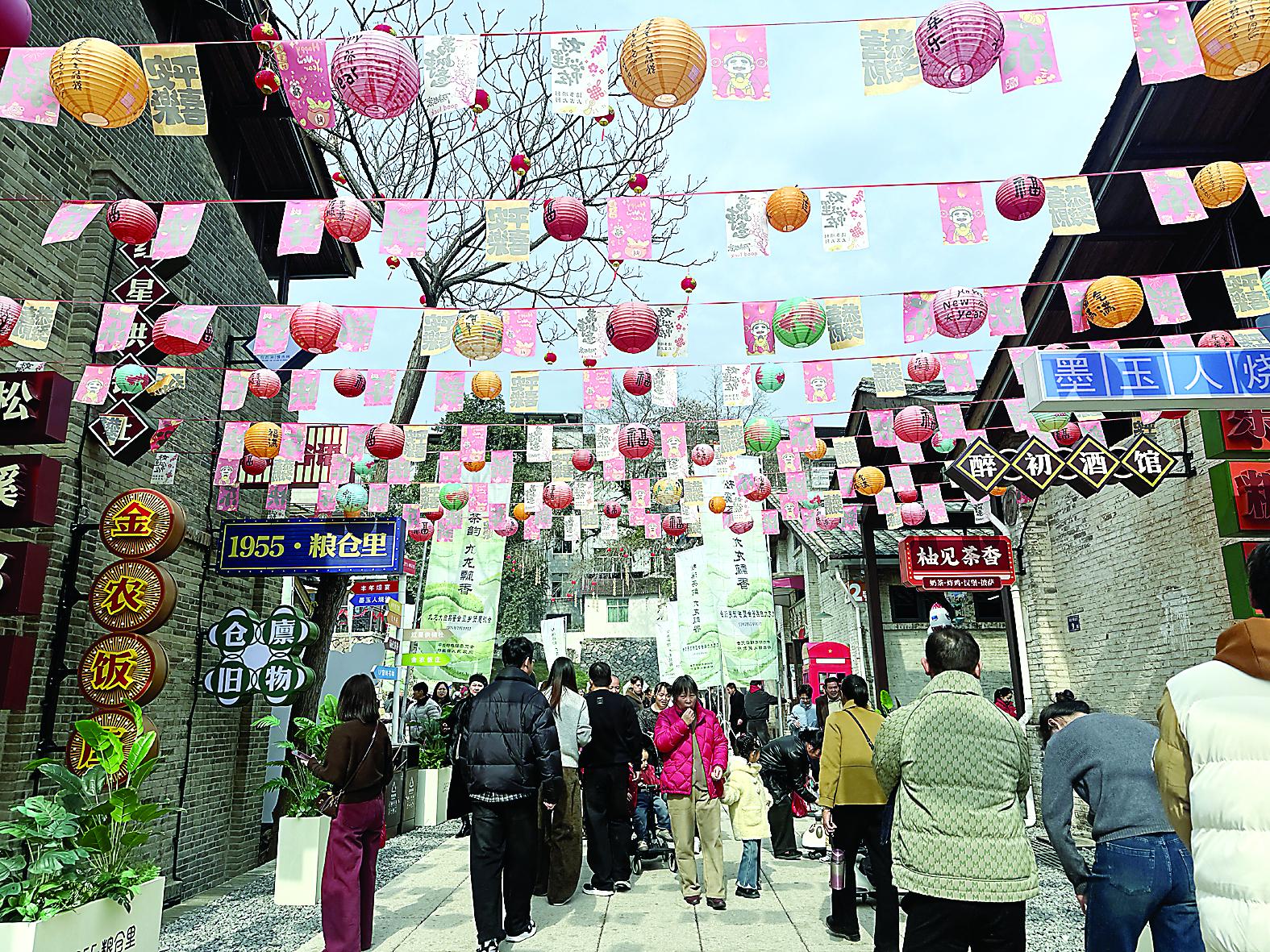 2月21日,松溪县“1955·粮仓里”主题街区内,游人逛集市、赏非遗,在浓浓的烟火气中欢度新春佳节。