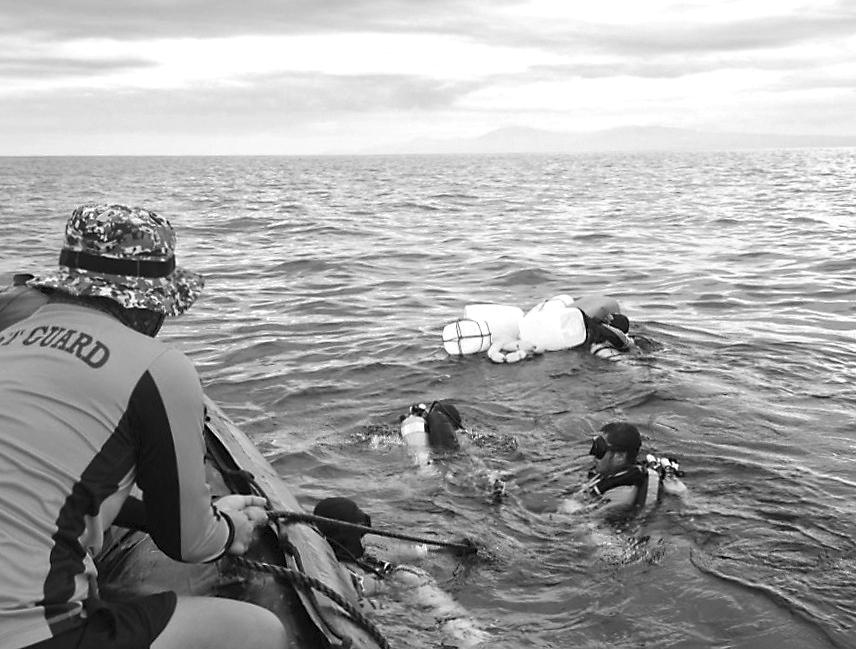 菲律宾海岸警卫队2月24日通报说,已完成对该国南部海域沉没渡轮的水下搜寻工作。目前,这起事故已确认65人死亡、293人获救,仍有14人失踪。1月26日凌晨,一艘渡轮在菲律宾南部巴西兰省附近海域沉没,事发时该渡轮上共有372人。 (新华社发 菲律宾海警供图)