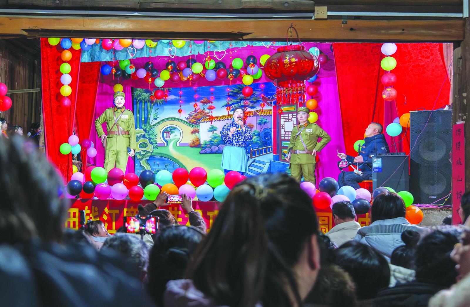 马年春节,在建瓯市吉阳镇巧溪村,一场“村晚”聚集了一村人,大家围坐一堂,看演出,话家常。对许多在外的巧溪人而言,“村晚”是独属于巧溪人的年俗。一场沉浸式的乡村年度聚会,不仅慰藉了乡亲们一年的辛勤劳作,庆祝丰收与团圆,更生动地将乡村的文化底蕴、生活美学与发展活力推至舞台中央,深度唤醒了人们心中共有的乡土情感与文化记忆。