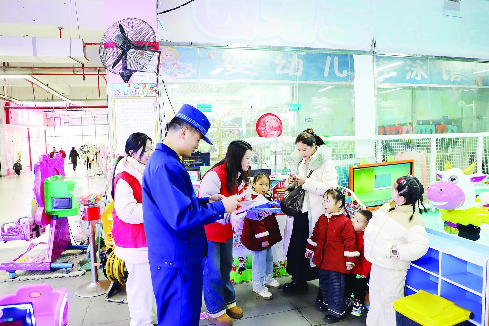 近日,邵武市消防救援局宣讲队联合“青春燃·志愿蓝”大学生消防志愿服务队伍开展“让爱返乡”消防主题志愿服务活动,以科普宣讲与暖心帮扶相结合,把平安知识送到群众身边,用青春力量守护家乡平安。图为大学生消防志愿者向小朋友们宣传消防知识。 (肖文辉 摄)
