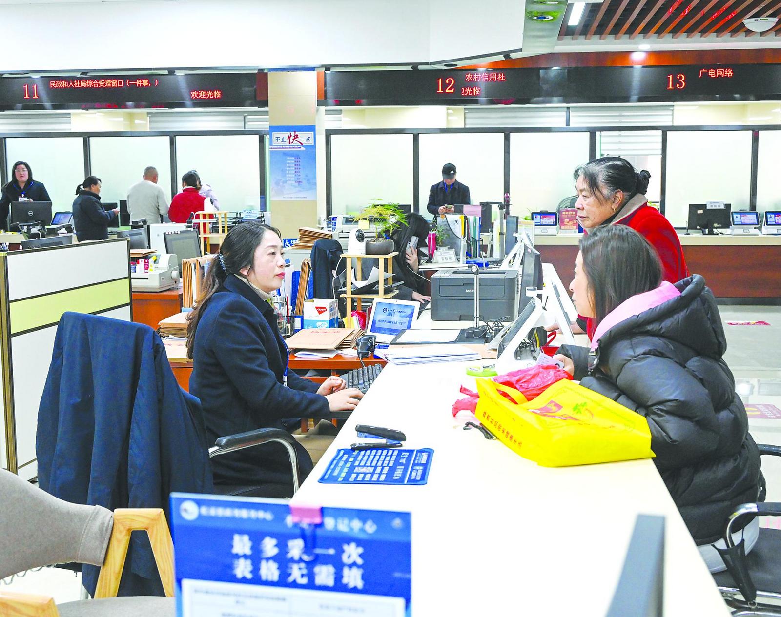 综窗整合优布局,服务供给“集约化”。以人员交叉培训为支撑,整合不动产登记中心、市场监管局等10个分领域窗口资源,归并业务职能,实现“无差别办理”,有效解决部门内部窗口忙闲不均问题,政务服务集约化水平持续提升。