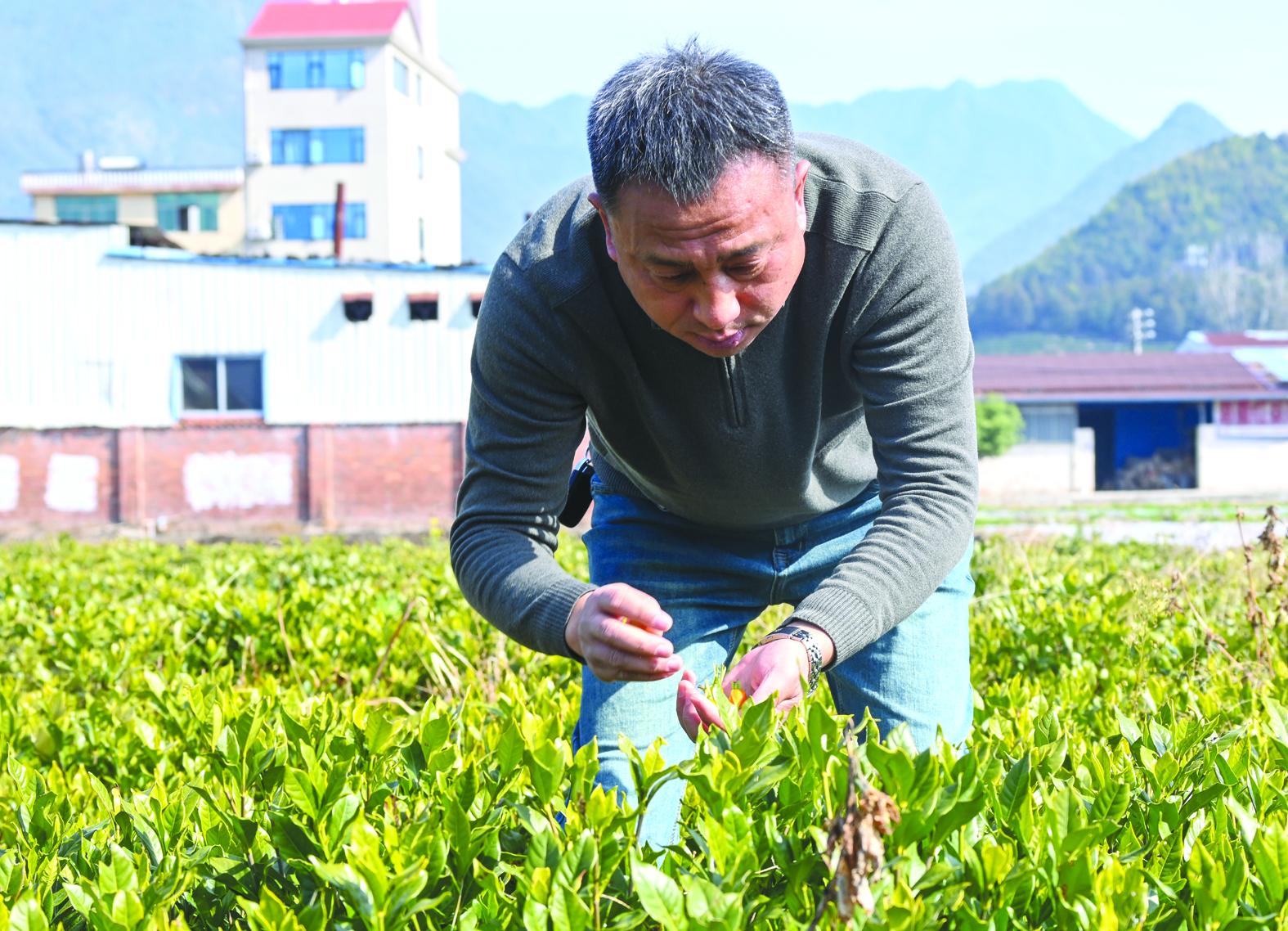 陈崇杰在查看栀子苗长势(张行健 摄)