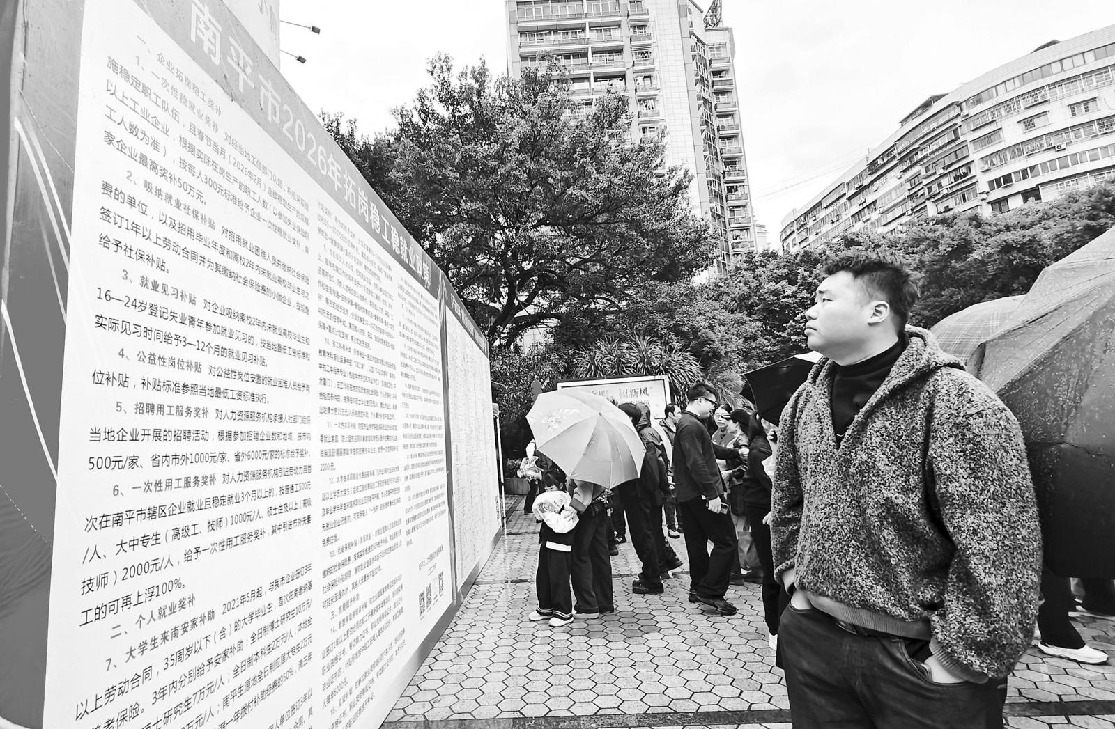 2月26日,南平市2026年“春风行动暨就业援助季”专场招聘会在延平区激情广场举行。本次活动由南平市人社局和延平区人社局主办,组织南平铝业、南孚电池等133家企业提供工作岗位3518个,吸引进场求职者超2000人次。图为招聘会现场。 (卢国华 卫金平 摄)