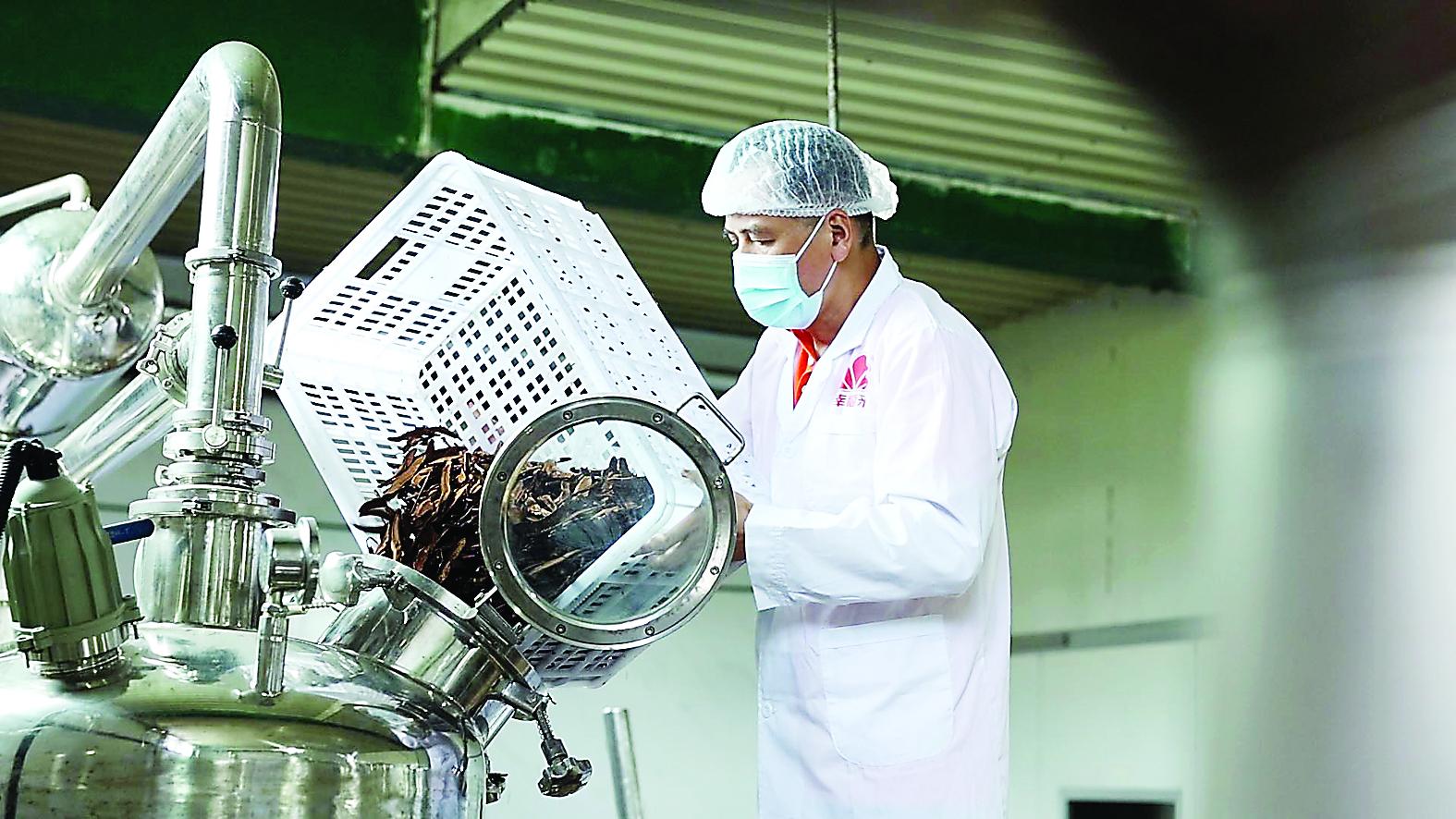 在顺昌县郑坊镇下坊村灵芝种植基地,工作人员正对灵芝进行深加工。