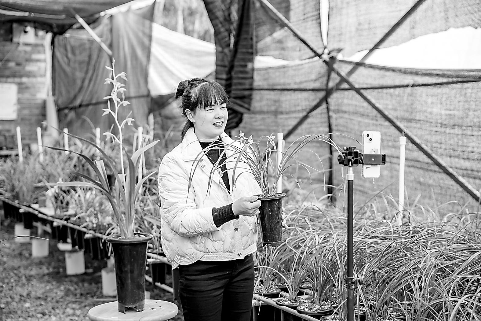 3月1日,在松溪县旧县乡的一处兰花种植大棚内,返乡创业青年杨花荣正通过电商直播热情地向网友推介基地内的各类兰花品种。从城市回到家乡,她借助“互联网+农业”的新模式,将深山里的兰花销往全国各地。