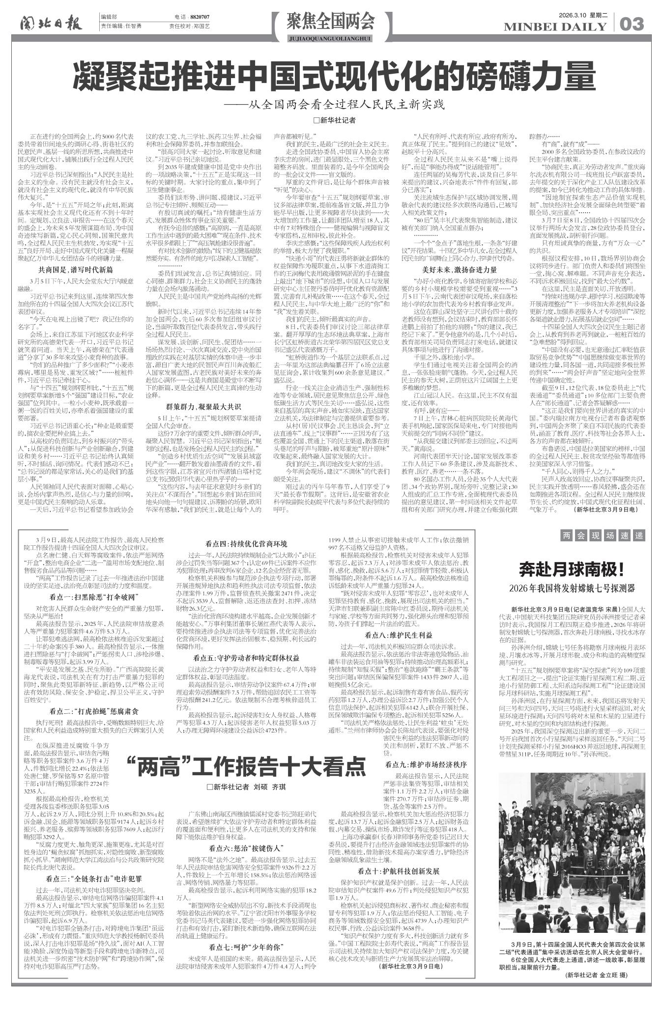 3月9日,最高人民法院工作报告、最高人民检察院工作报告提请十四届全国人大四次会议审议。