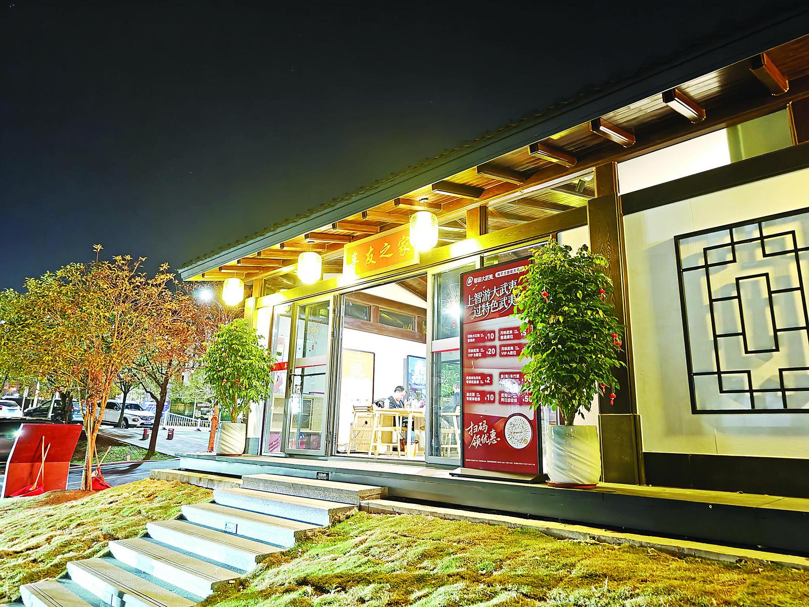 三月的武夷新区,夜风微凉。水之厅公园旁那间青瓦白墙的小屋里,暖黄的灯光从敞开的门中透出,隐约能听见人声。